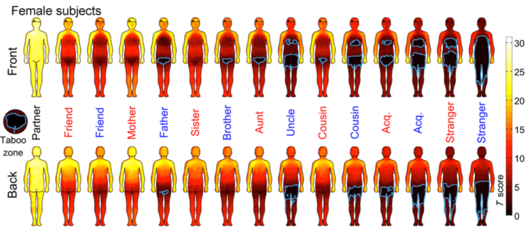 Potrivit studiului, majoritatea respondenţilor s-au simţit confortabil cu atingerile în orice zonă a corpului, dacă acestea veneau din partea partenerului. Respondenţii au precizat, de asemenea, că prietenii apropiaţi şi rudele îi pot atinge pe cap şi pe posterior, în vreme ce străinii ar trebui să le atingă doar mâinile.