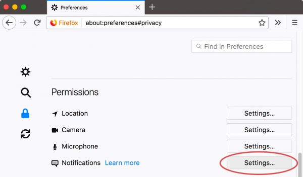 Firefox (Mac) – Dezabonează-te din preferințele de notificări din browser