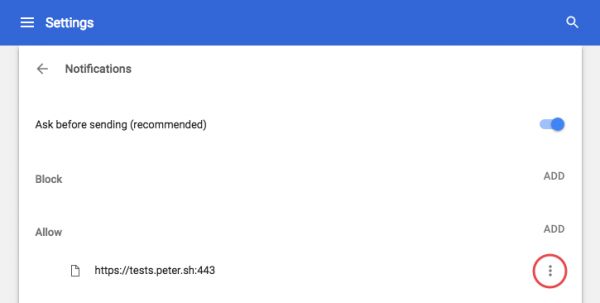 Găsește site-ul de la care ai primit notificările, selectează iconița cu 3 buline și apasă REMOVE.