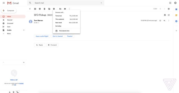 O nouă funcție de amânare îți permite să înlături temporar email-urile din Inbox, iar atât Snooze, cât și Smart Reply fac parte acum din aplicația Inbox pentru Gmail.