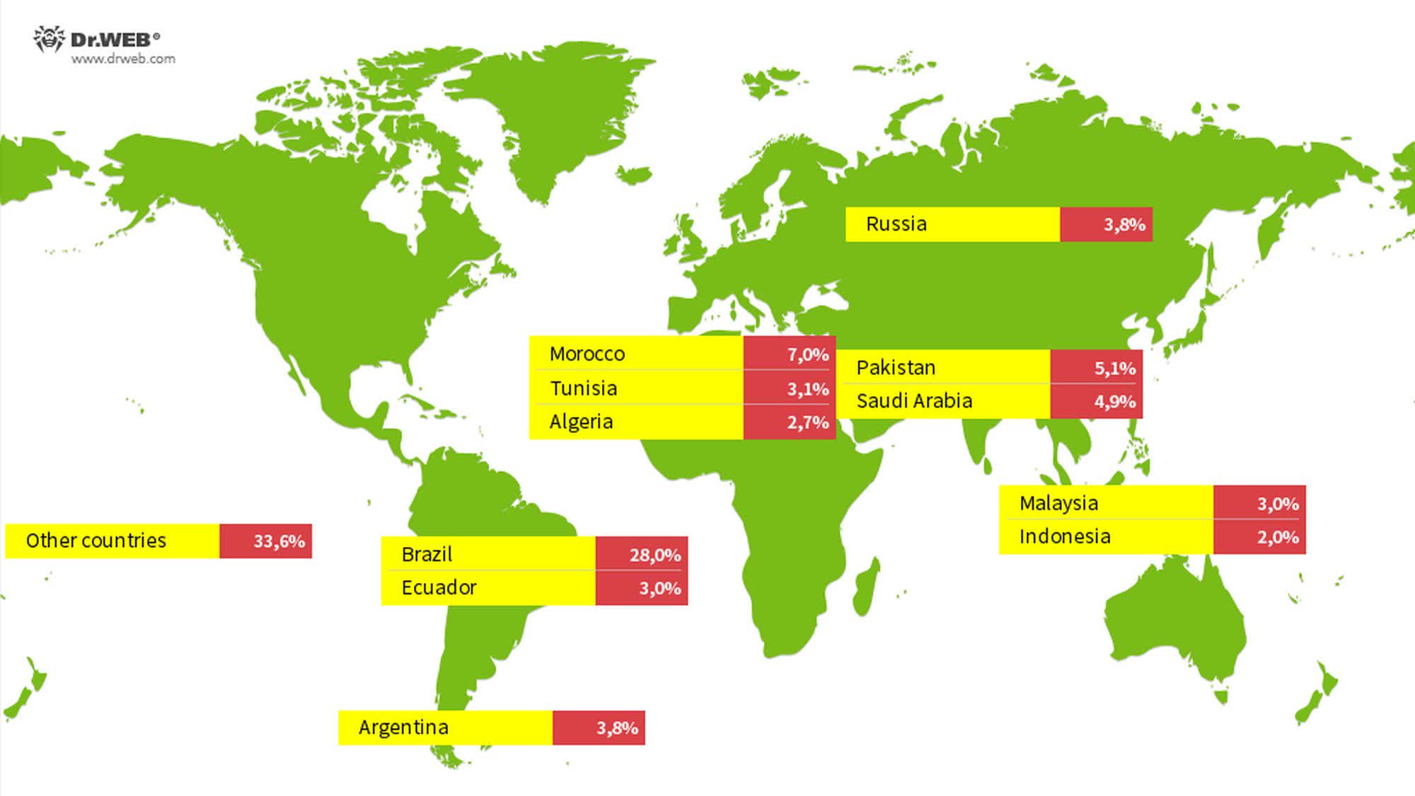 Deși malware-ul Vo1d a fost detectat în aproape fiecare țară din lume, cel mai mare număr de infecții a fost raportat în Brazilia, Maroc, Pakistan, Arabia Saudită, Rusia, Argentina, Ecuador, Tunisia, Malaezia, Algeria și Indonezia. Brazilia este cea mai grav afectată, cu aproximativ 28% dintre dispozitivele infectate considerate a fi utilizate în țară.