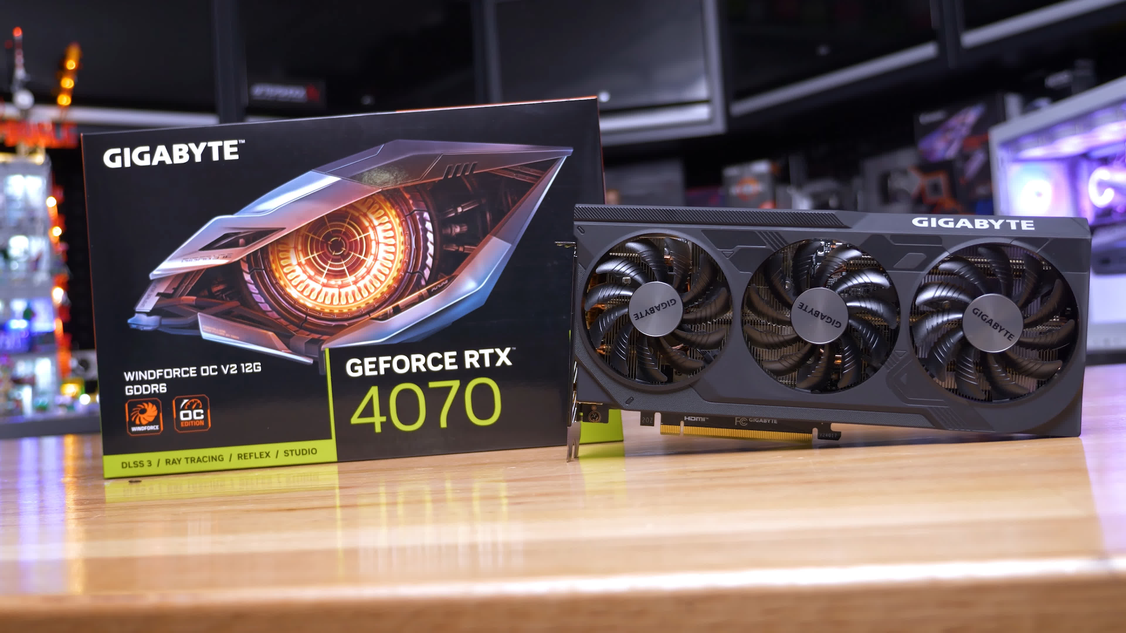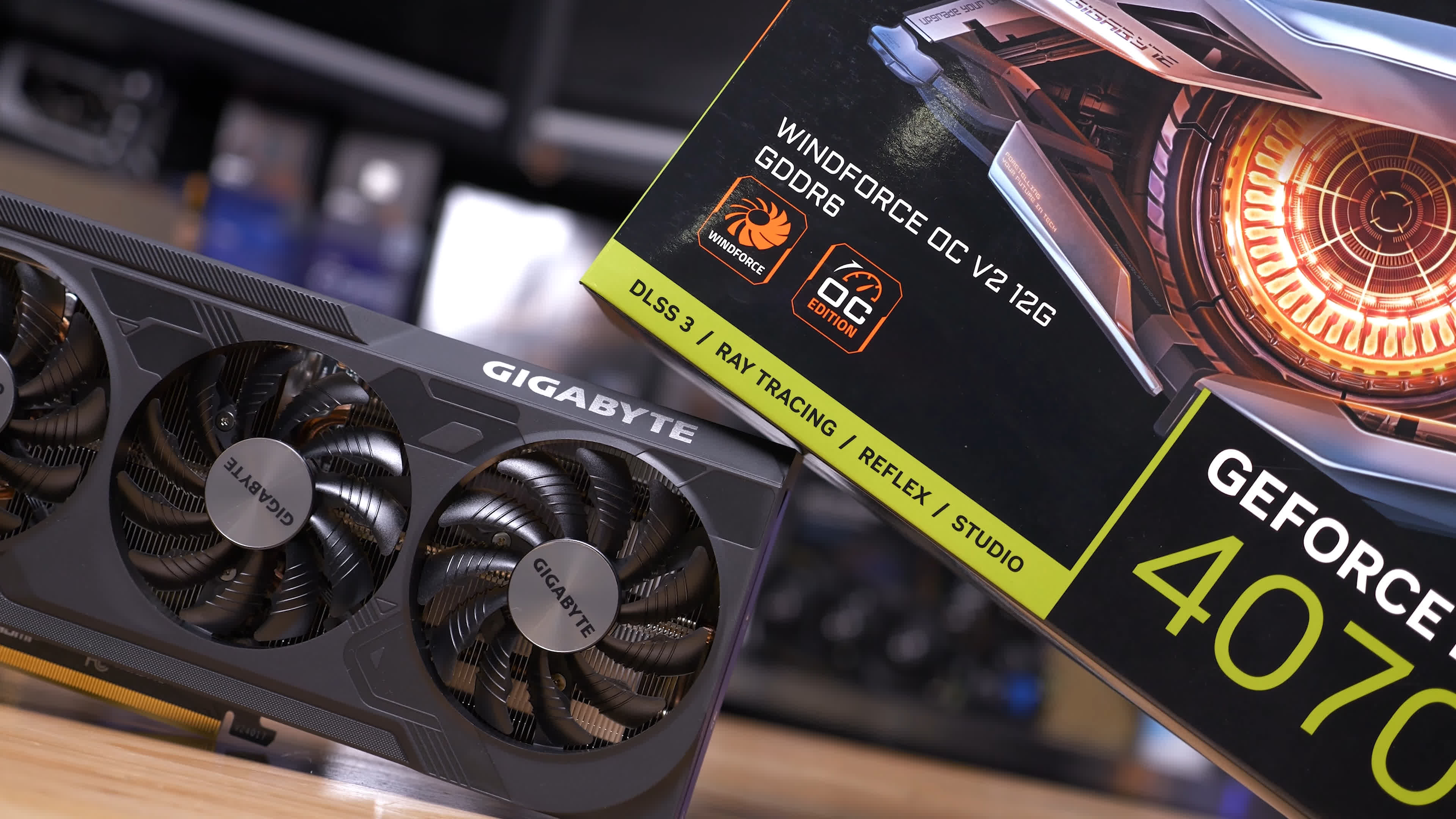 Rezultatele originale RTX 4070 se bazează pe modelul Founders Edition, care are un tac ușor mai mic decât versiunea Gigabyte Windforce OC GDDR6 pe care am achiziționat-o, astfel încât vitezele de ceas de bază sunt în esență aceleași. Diferența cheie aici este viteza memoriei, care scade de la 21 Gbps la 20 Gbps.