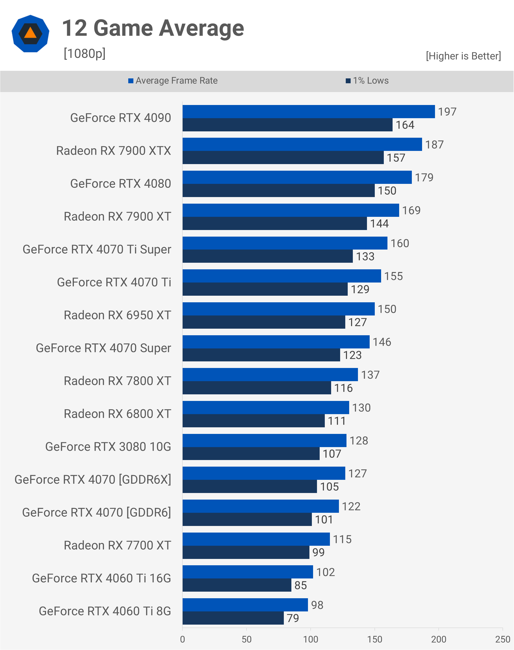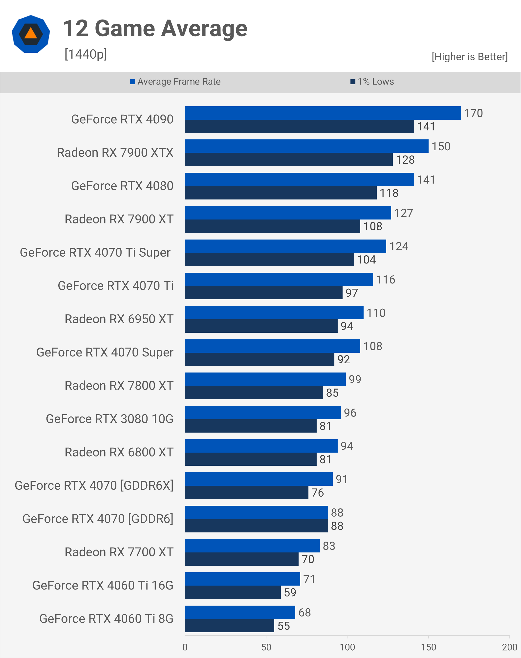 Nu vom petrece prea mult timp pe aceste date, deoarece este în principal pentru a valida modificările de performanță. Vom analiza câteva jocuri individuale la 1440p și apoi vom verifica datele medii pentru 12 jocuri la 1080p, 1440p și 4K.