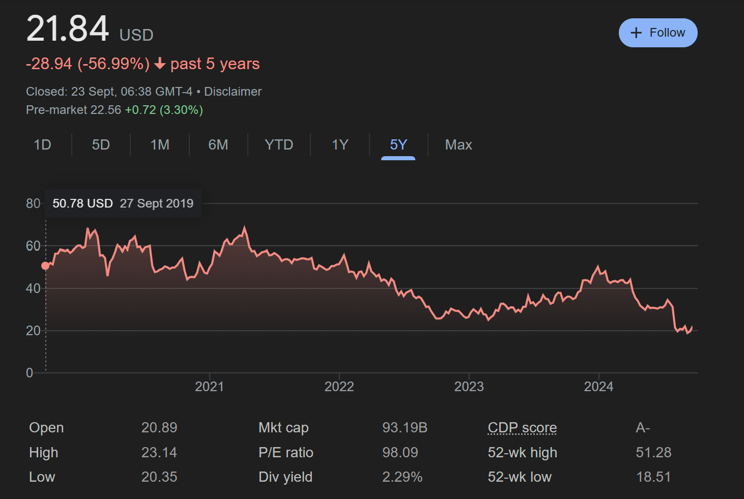Acțiunile Intel și-au revenit ușor în această lună, crescând de la 18,89 dolari pe 6 septembrie la 21,84 dolari astăzi. Rapoartele despre investiția potențială au împins prețul cu 2%, în timp ce anunțul CEO-ului Pat Gelsinger privind un acord cu Amazon Web Services pentru a co-investi într-un semiconductor personalizat AI a sporit, de asemenea, acțiunile.