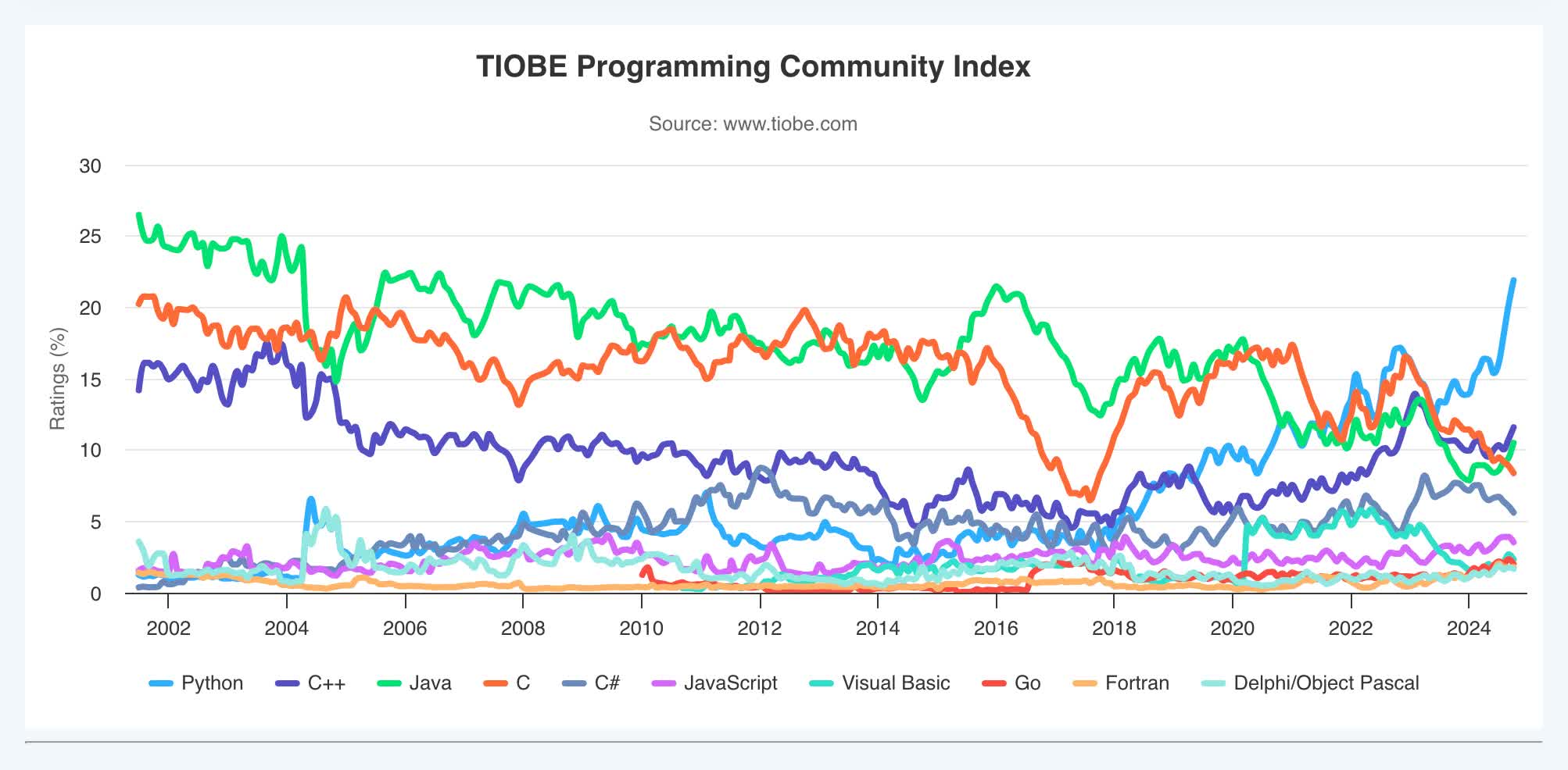 Potrivit CEO-ului TIOBE Software, Paul Jansen, cantitatea de date digitale din lumea tehnologiei de astăzi crește într-un ritm fără precedent, ceea ce duce la o cerere crescută pentru instrumente care pot procesa și manipula eficient aceste date. Programatorii au nevoie acum de limbaje care excelează în manipularea unor volume mari de biți și octeți, efectuarea de calcule complexe și furnizarea de performanțe ridicate.