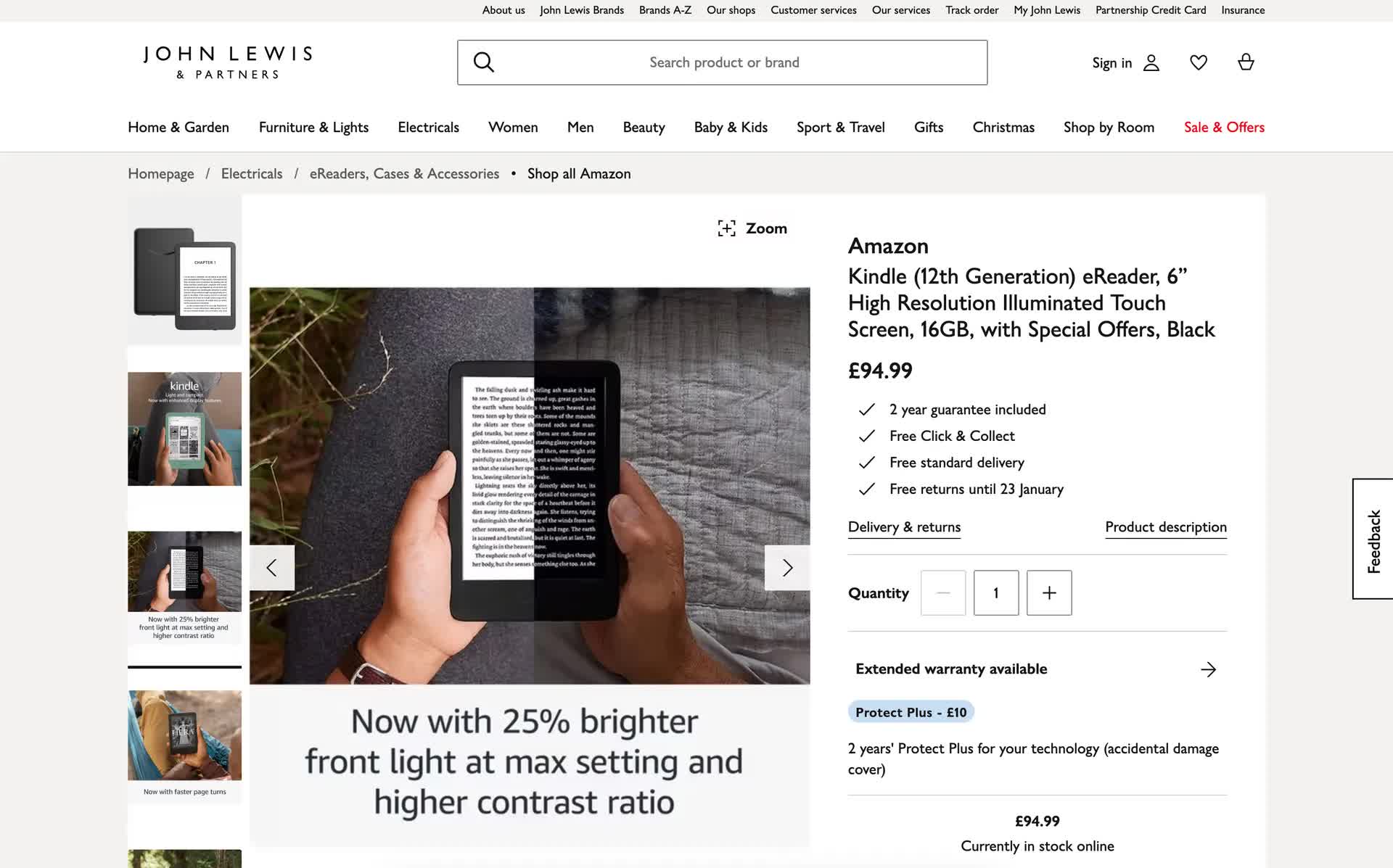 John Lewis, un magazin universal din Marea Britanie care vinde aproape orice, a enumerat prematur cititoarele electronice Kindle împreună cu specificațiile lor.