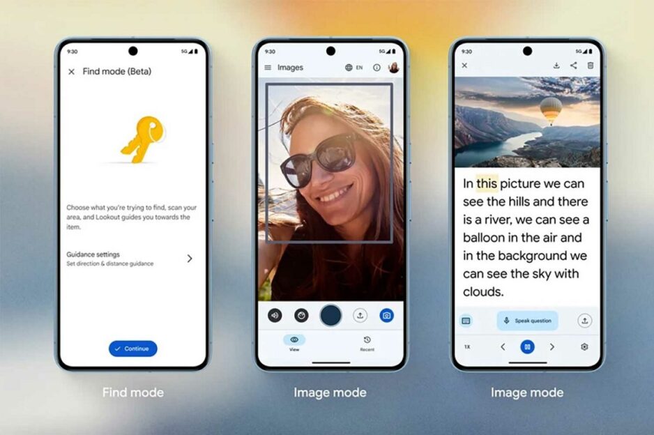 De eerste nieuwe functie is een verbetering van Lookout, ontworpen om blinde of slechtziende mensen te helpen begrijpen wat er om hen heen gebeurt. Lookout maakt gebruik van de camera van de telefoon om informatie te geven over de omgeving en heeft nu een nieuwe „Zoekmodus”. Deze modus, die momenteel in bèta is, laat gebruikers kiezen uit zeven categorieën van objecten (zoals stoelen, tafels, badkamers) en maakt gebruik van AI om hen te helpen het juiste object te vinden. „Wanneer je de camera door de kamer beweegt, geeft Lookout je aanwijzingen over de richting en afstand tot het object,” aldus Eve Andersson, verantwoordelijk voor inclusie, gelijkheid en toegankelijkheid van producten bij Google.