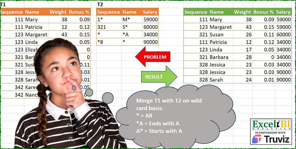 Ni se oferă două tabele unul cu datele angajaților, iar al doilea cu repartizarea condiționată a salariului. Există un fel de expresie regulată acolo, dar nu în notația oficială, ci mai degrabă care oferă puterea asteriscului lui Joker – înlocuiți unul sau mai multe caractere. Deoarece această notație de substituent nu poate fi folosită în R, am făcut unele modificări în tabelul T2 folosind așa cum l-am numit BRAIN.API (propria mea minte :D). Verifică ce a fost mai târziu.