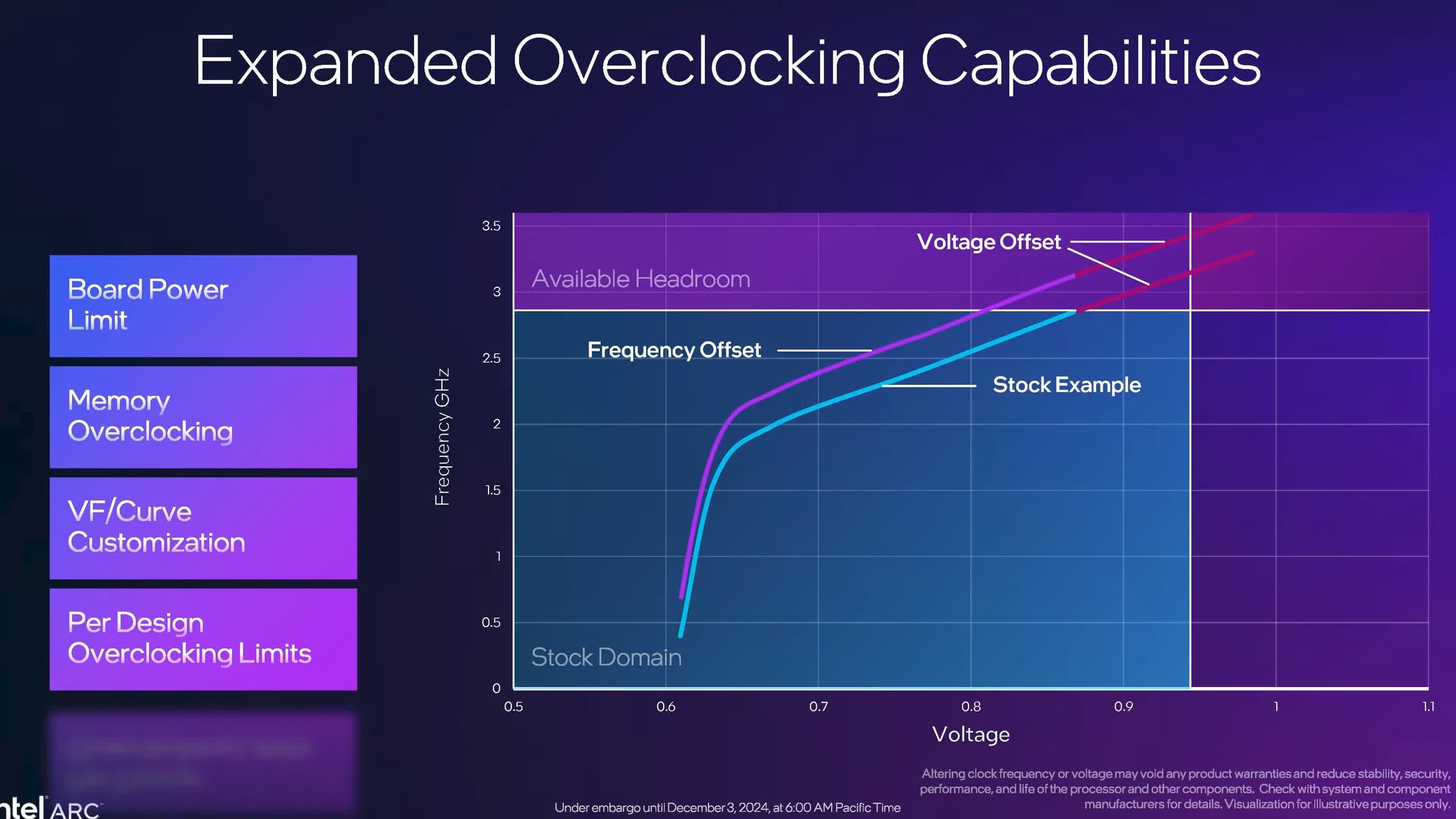Există, de asemenea, instrumente extinse de overclocking, inclusiv capacitatea de a ajusta limitele de putere a plăcii, curbele tensiune-frecvență și memorie din cadrul aplicației.