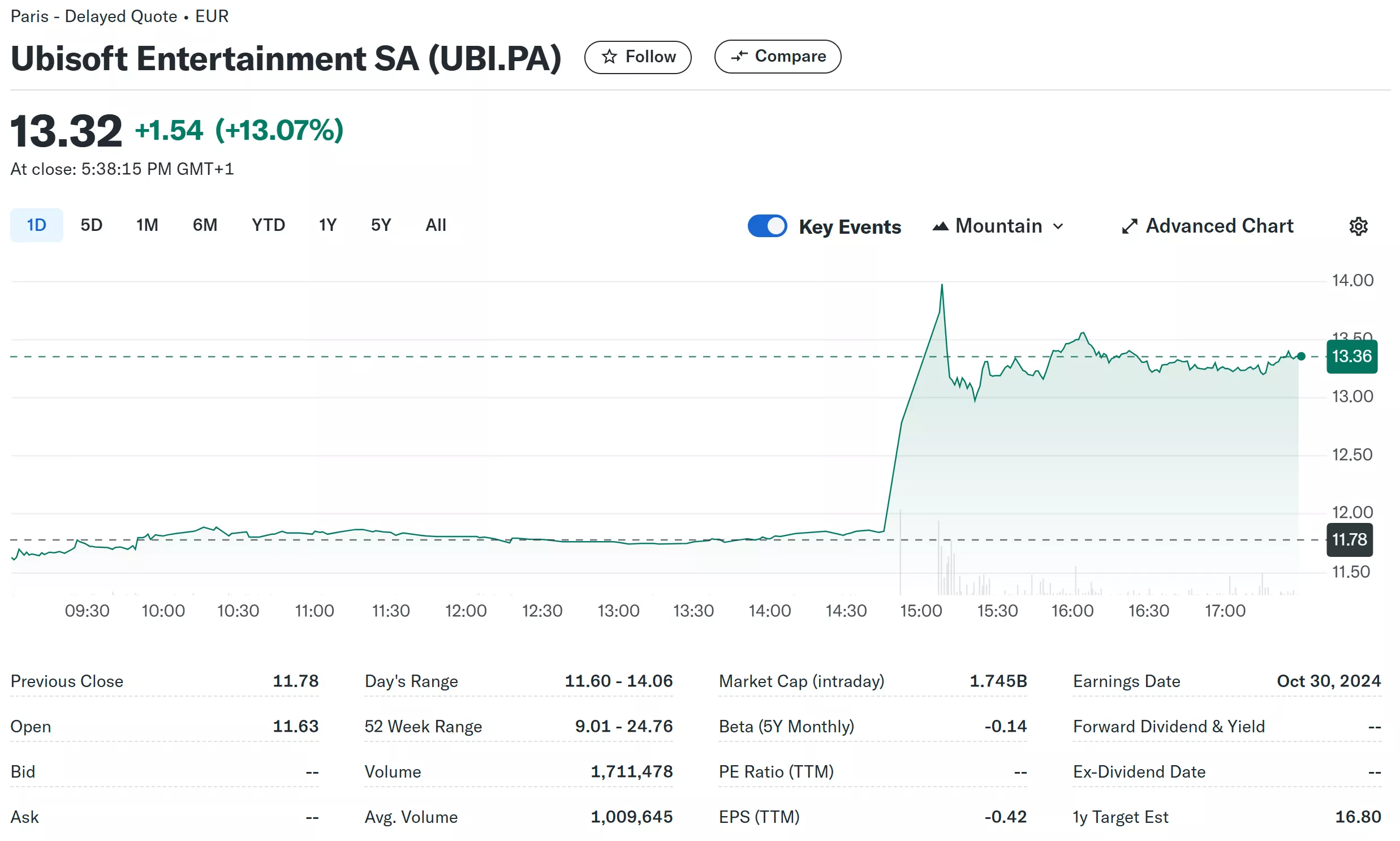 Acțiunile Ubisoft au crescut cu 13% în urma știrilor despre discuțiile continue de cumpărare. Rapoartele anterioare despre negocieri au provocat o creștere record de peste 30%. Deși Ubisoft a încercat să minimizeze entuziasmul spunând că examinează în mod regulat propunerile de cumpărare, evoluțiile ar putea fi extrem de necesare, având în vedere declinul abrupt recent al editorilor.