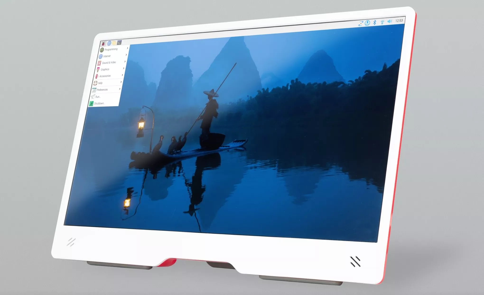 Monitorul poate fi alimentat direct de la un port USB Raspberry Pi, deși luminozitatea și volumul vor fi limitate la 60%, respectiv 50%; cu o sursă de alimentare dedicată, puteți accesa luminozitatea și sunetul maxim.