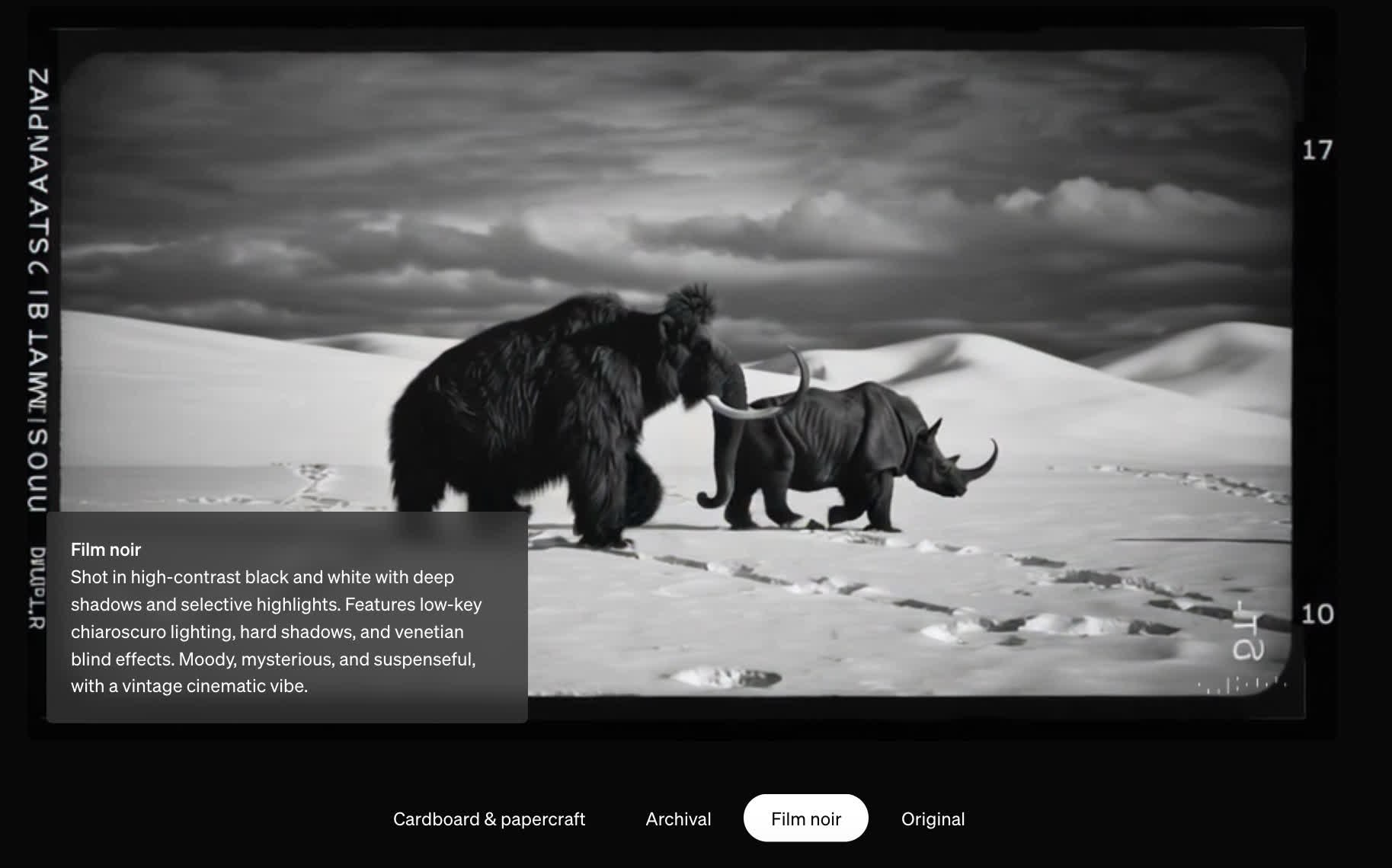 De asemenea, obțineți mai multe presetări de stil pe care le puteți aplica videoclipului. Unele dintre exemple includ Carton și hârtie, Arhivă, Film noir și Original. Filmul noir, de exemplu, adaugă niște negri cu contrast ridicat, care amintesc de acele filme de la mijlocul anilor 1900.