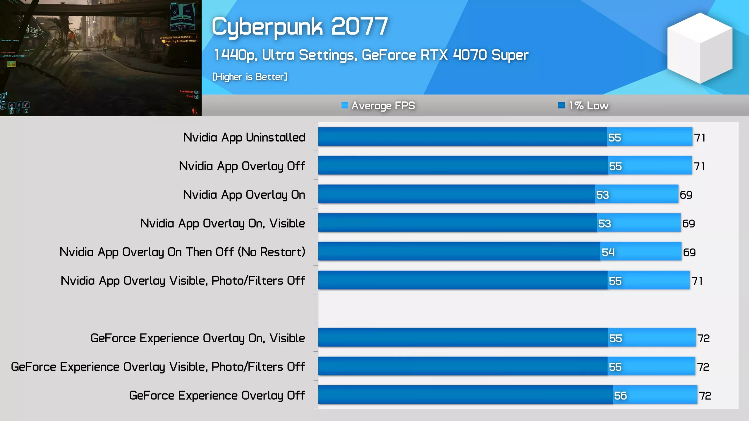 • Alte funcții de suprapunere, cum ar fi valorile de performanță sau înregistrarea video, au un impact minim sau deloc asupra FPS.