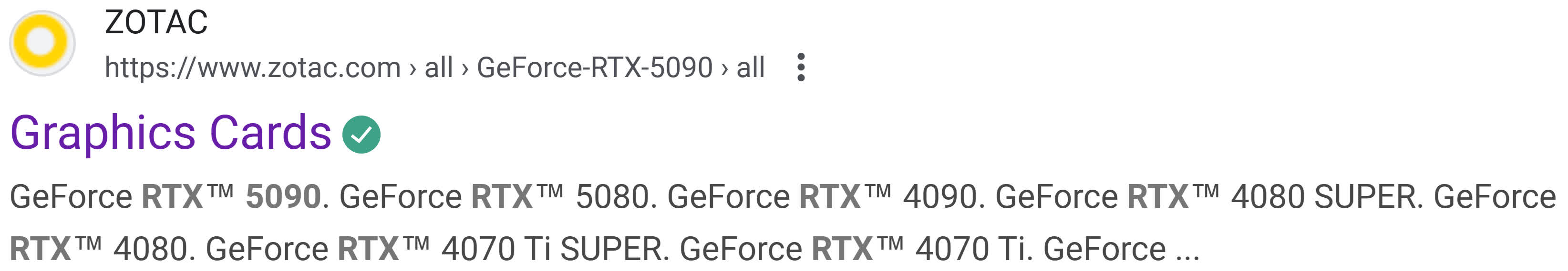 VideoCardz a capturat capturi de ecran ale site-urilor Zotac înainte ca compania să le elimine și ele apar în continuare pe căutările Google pentru versiunea de vârf a lui Zotac RTX 5090. Apar și 5090D (pentru piețele chineze), 5080, 5070 Ti și 5070.