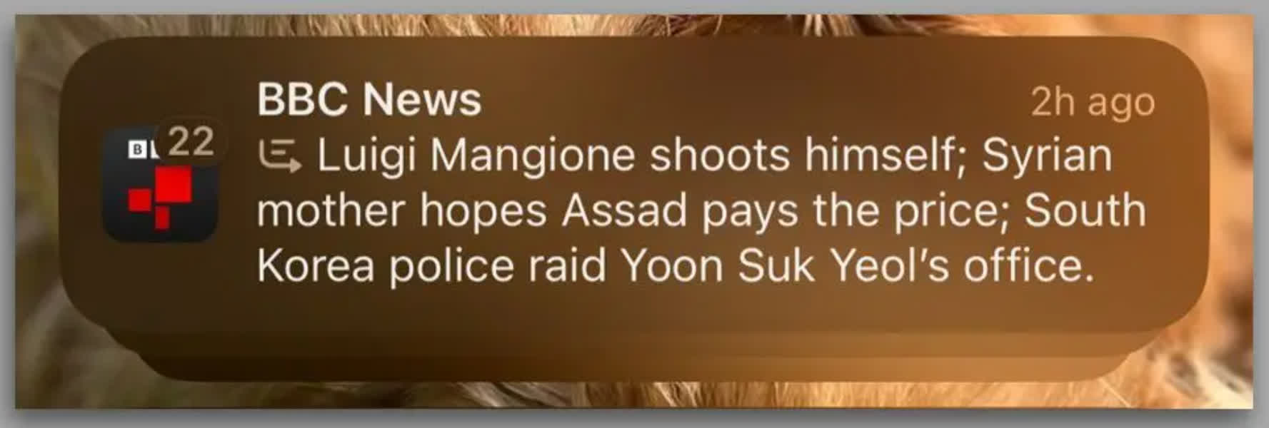 Notificarea rezumată în cauză arăta trei titluri: cel fals despre Mangione și două titluri corecte, despre răsturnarea regimului lui Bashar al-Assad din Siria și o actualizare despre președintele sud-coreean Yoon Suk Yeol.