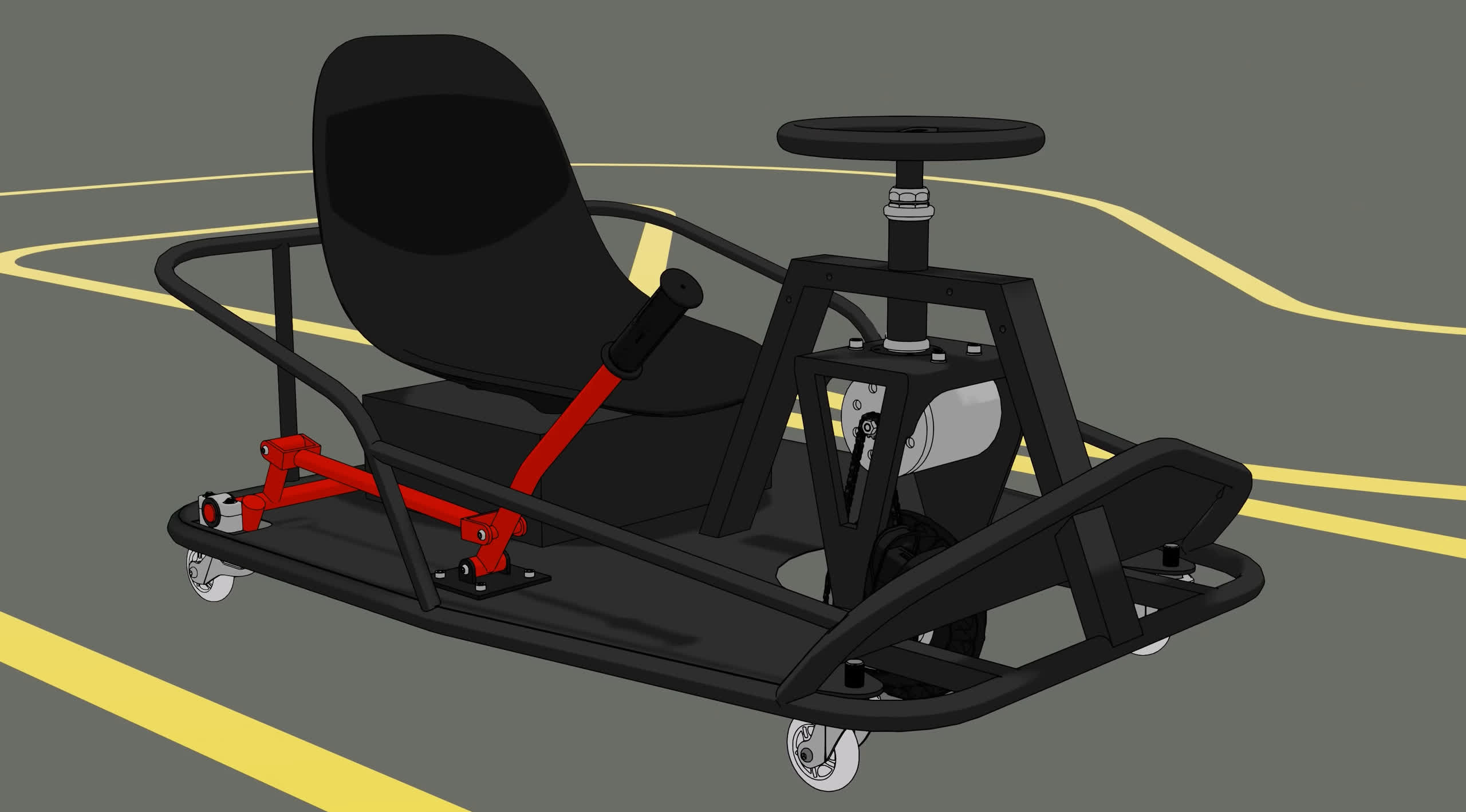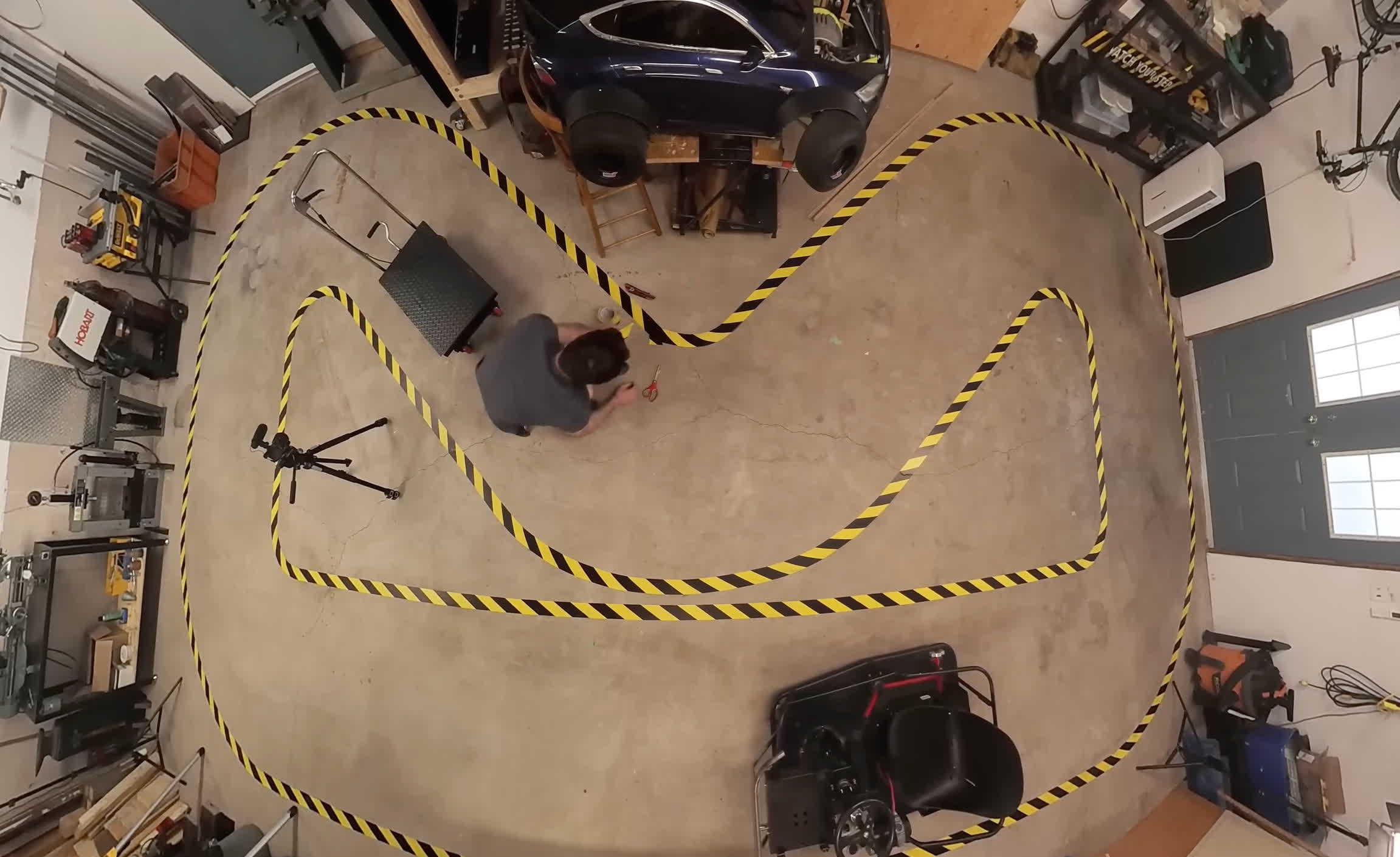 YouTuber Austin Blake este unul dintre acei oameni care se întâmplă să aibă un kart auto-construit întins acasă. După ce l-a botezat „Crazy Cart”, a decis să-l transforme în propria sa platformă de testare autonomă. Pentru aceasta, el a proiectat mai întâi o pistă improvizată așezată pe podeaua atelierului său, folosind markere de bandă contrastante. După cum puteți vedea în imaginea de mai jos, spațiul este destul de îngust, dar la fel este și raza de cotitură a căruciorului.