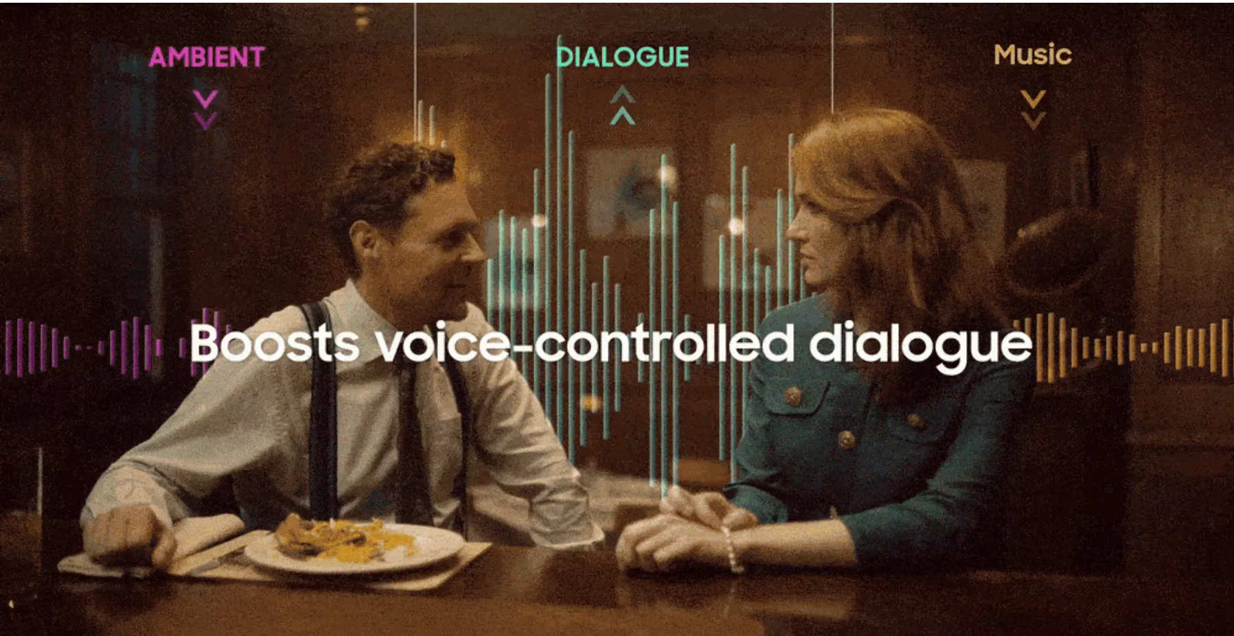 Pentru cei care urăsc să se străduiască să audă dialogul în emisiuni și filme, Samsung Active Voice Amplifier face distincție între voci și zgomotul de fundal, permițând cuvintelor actorilor să fie auzite clar chiar și în medii zgomotoase. Există, de asemenea, Object Tracking Sound (OTS) Pro, care pretinde că pune spectatorii în scenă, astfel încât să poată auzi ceea ce aud personajele.