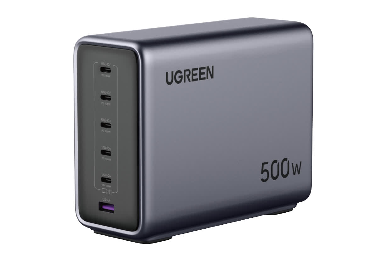 Ugreen numește Nexode Desktop Charger „primul” încărcător GaN de 500 de wați din lume pentru setările de birou și utilizatorii cu mai multe dispozitive. Singurul bit care lipsește, am spune noi, este un ecran care să vă ajute să vă gândiți la puterea aceea și să urmăriți portul potrivit de utilizat.