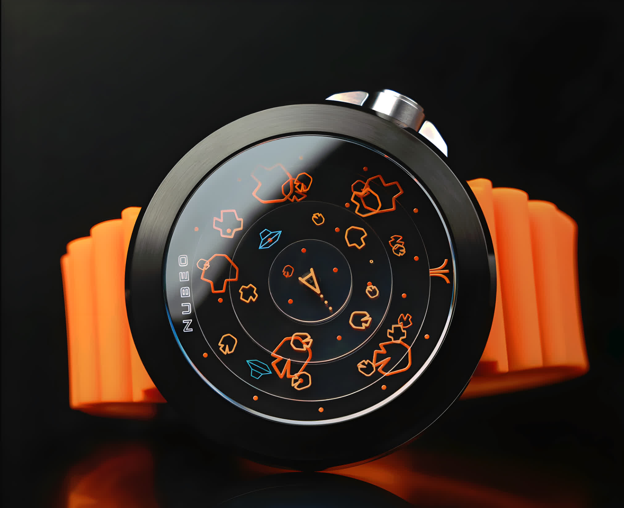 Nu este imediat evident cum ar trebui să citească purtătorii timpului afișat pe ceasuri. Ei folosesc o mișcare automată japoneză care mișcă trei discuri. Cel mai mic dintre cei trei din centru prezintă nava triunghiulară originală asteroizi care își trage proiectilele. Aceasta acționează ca a doua mână a ceasului. Cele două discuri exterioare sunt umplute cu asteroizi, care acționează ca mâinile minute și ore.