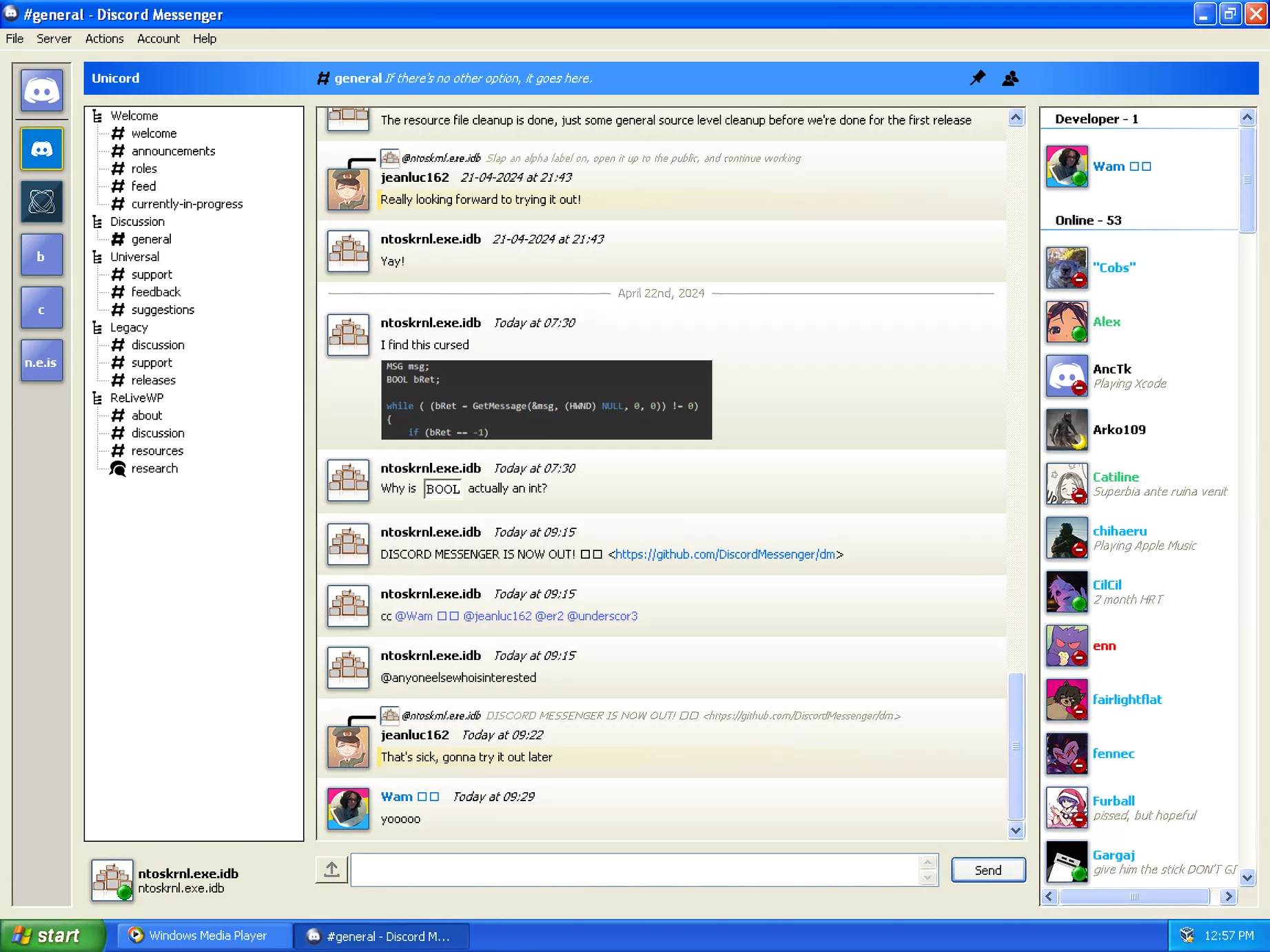 Discord Messenger, de la dezvoltatorul iPrograminCPP, este un client gratuit de mesagerie compatibil cu discordie, care funcționează pe parcursul a aproape trei decenii de versiuni Windows. Acesta este susținut oficial înapoi la Windows 2000, deși Dev a evidențiat recent pe X, funcționează din punct de vedere tehnic și la versiuni chiar mai vechi. Motto -ul său: este timpul să ștergeți MSN și Yahoo.