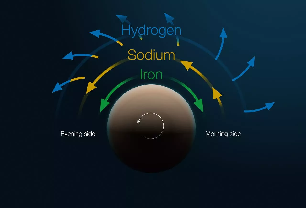 Analizând aceste date, oamenii de știință au urmărit semnăturile diferitelor elemente din straturile atmosferice ale planetei-fier în atmosfera profundă, sodiu în atmosfera mijlocie și hidrogen în partea de sus. În mod remarcabil, aceasta este prima dată când cercetătorii au reușit să examineze atmosfera unui exoplanet într -o asemenea profunzime.