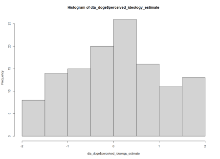 Variabila percepută_ideologică_estimat este obținută din cercetările care au investigat perceput Ideologia agențiilor guvernamentale. Variind de la -2 la +2, agențiile percepute drept „liberale” tind să aibă scoruri sub 0, în timp ce cele percepute ca fiind mai conservatoare au scoruri peste 0. Deși distribuția este aproape de normal, există ceva mai multe agenții în datele stabilite cu Scoruri peste zero (54%) decât sub zero (46%).