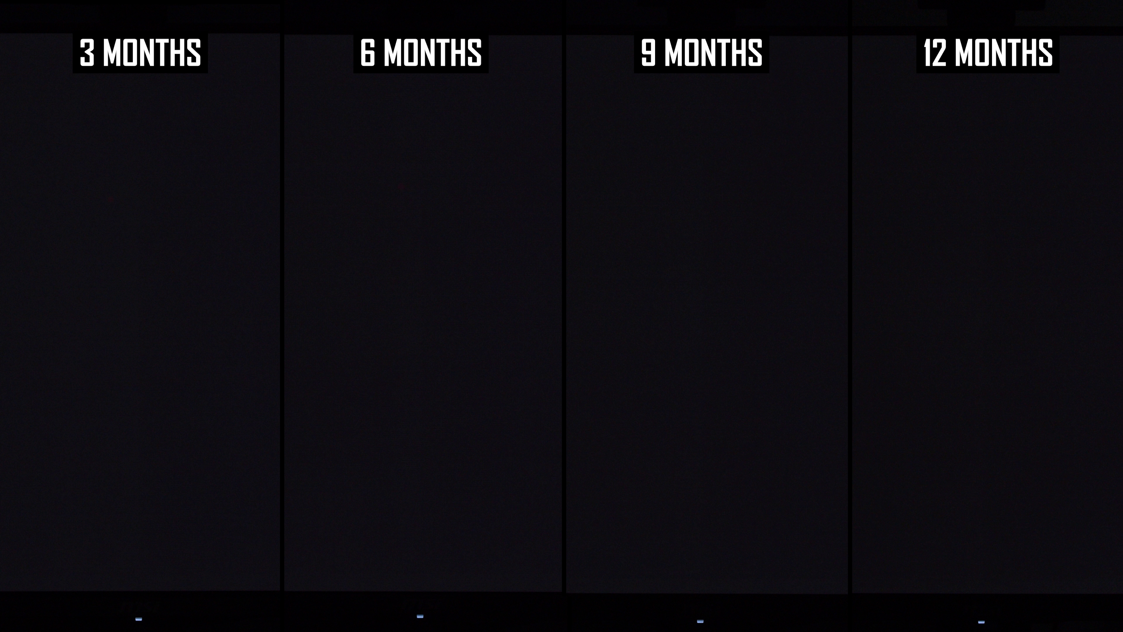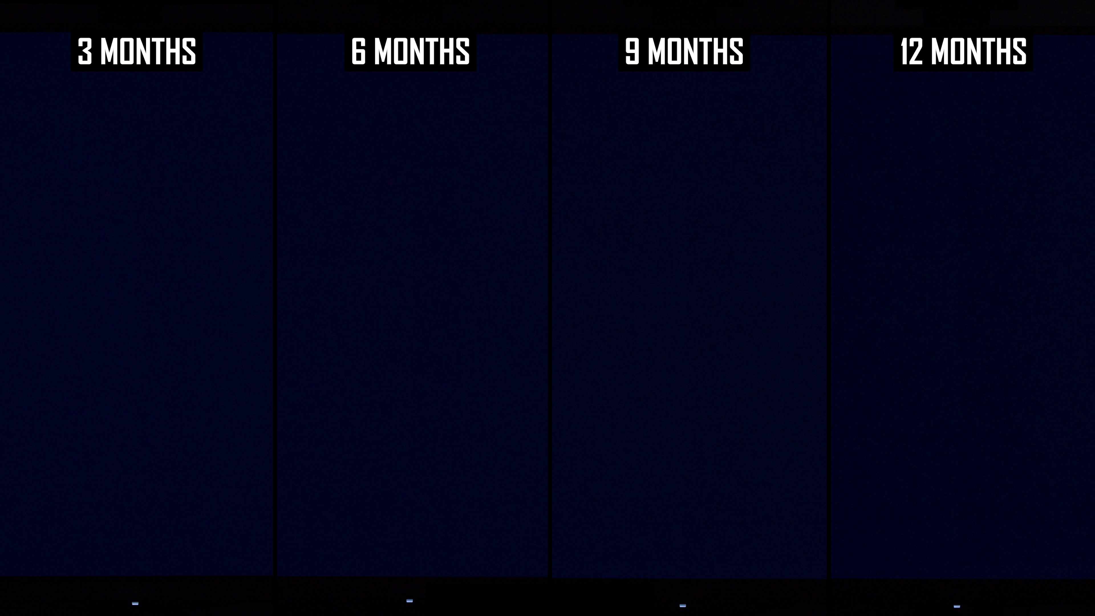 În această actualizare, ne concentrăm pe rezultatele de 3, 6, 9 și 12 luni. Din nou, ne uităm la centrul afișajului, unde s-a remarcat o ardere vizibilă în lunile anterioare: o linie în centrul ecranului, cel mai probabil datorită utilizării frecvente a aplicațiilor cot la cot.