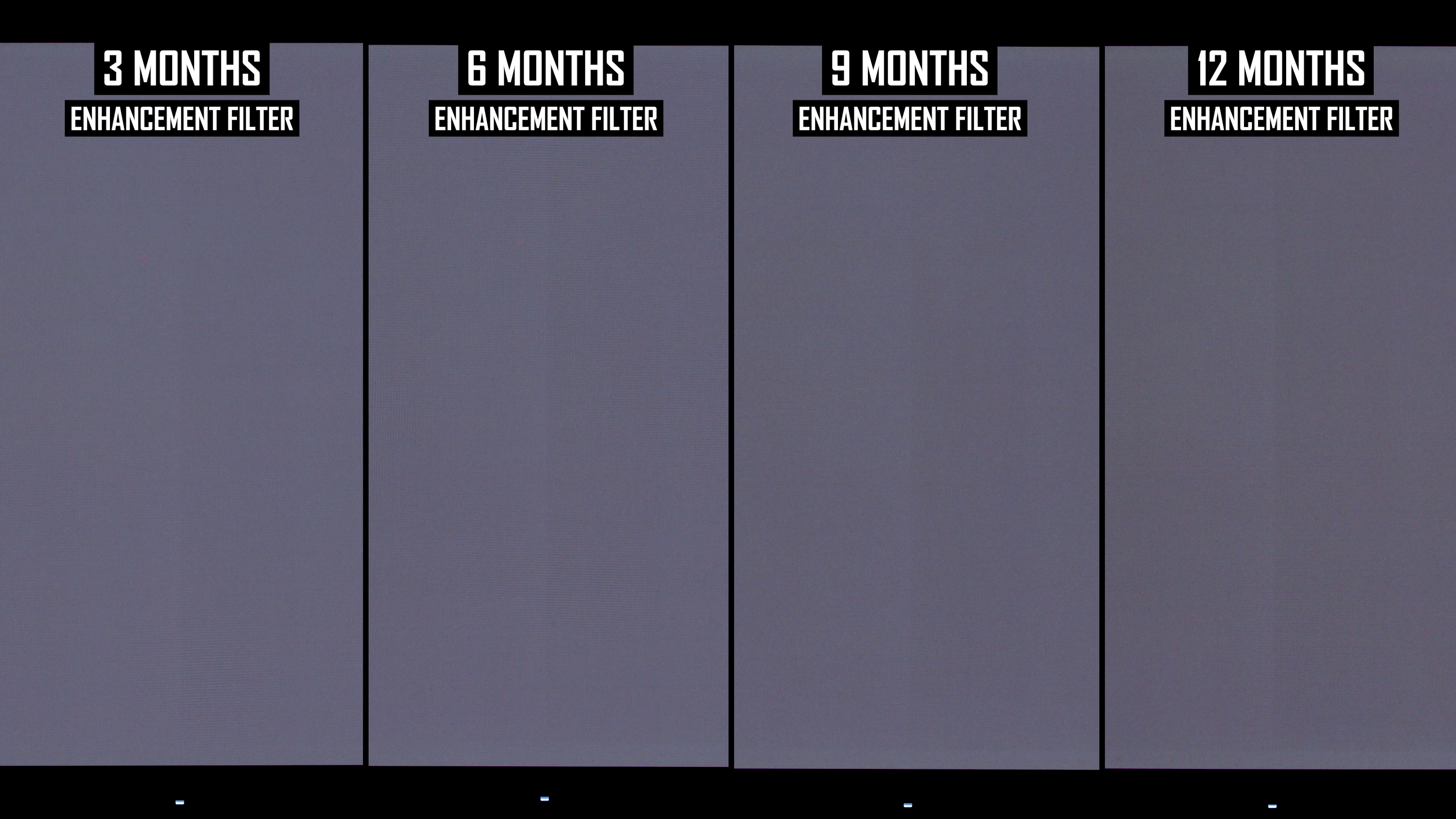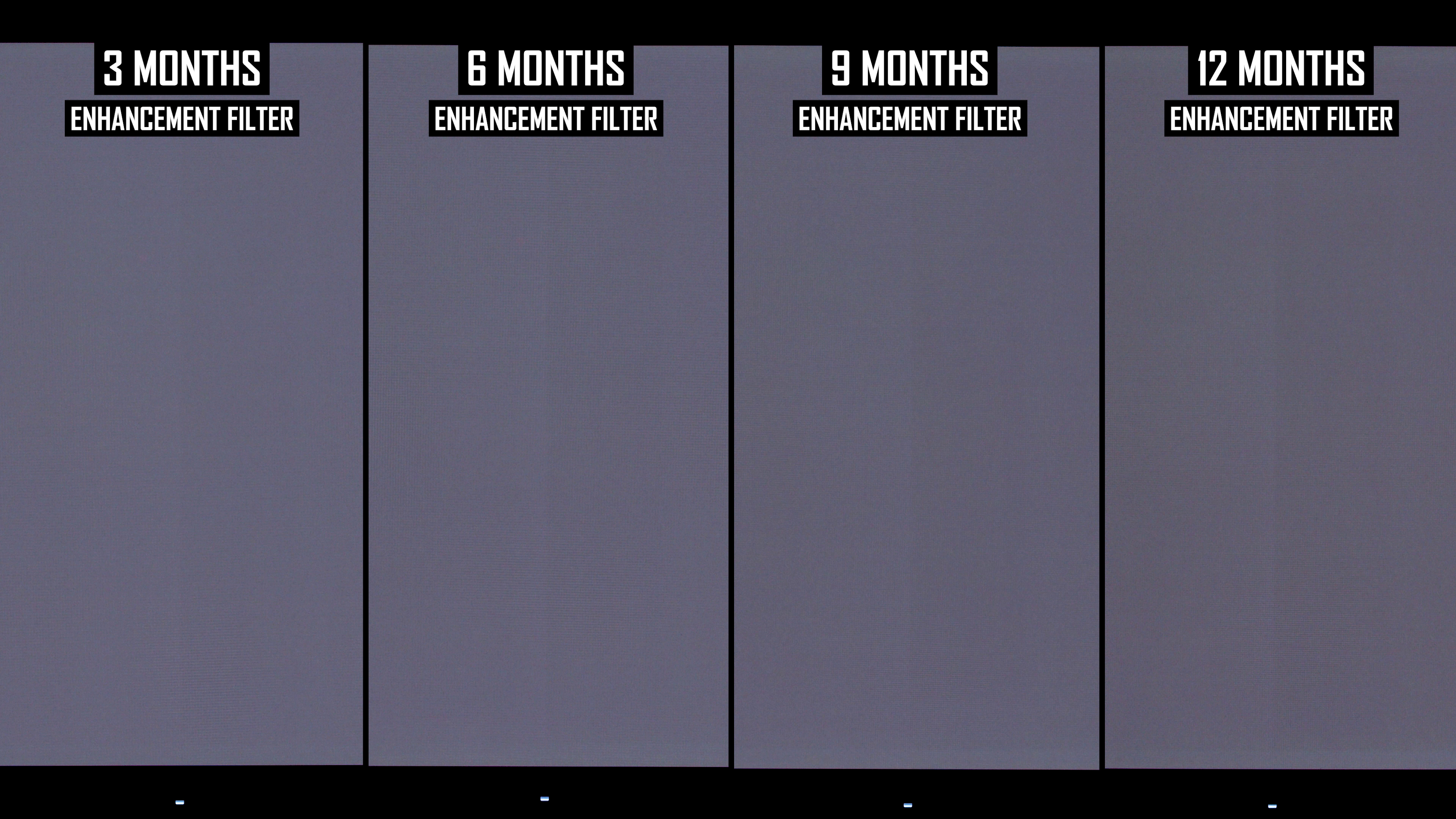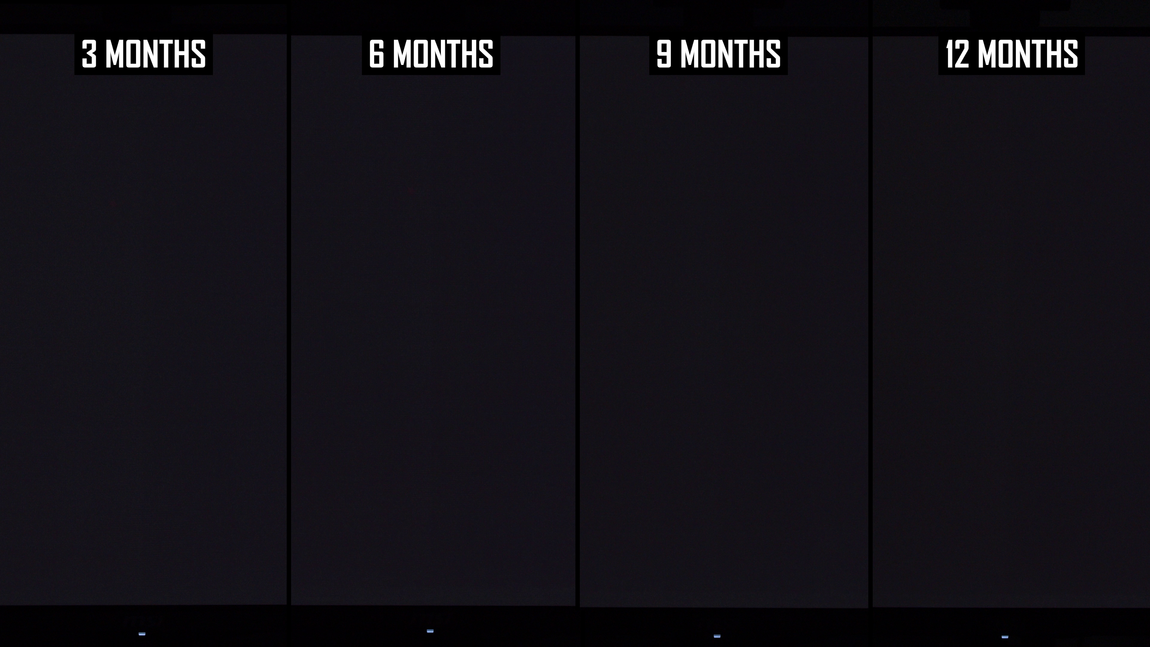 Rata recomandată pentru ciclurile de protecție a panoului este la fiecare patru ore, deci acesta este un test de stres deosebit de intens. Nu numai că panoul este utilizat într-un scenariu cel mai rău pentru conținut static, dar este de asemenea rulat la un nivel de luminozitate relativ ridicat, fără atenuare software pentru a minimiza arsura (cum ar fi punerea afișajului la somn după câteva minute de inactivitate) – În timp ce rulați ciclul de protecție a panoului pe jumătate cât de des recomandat.