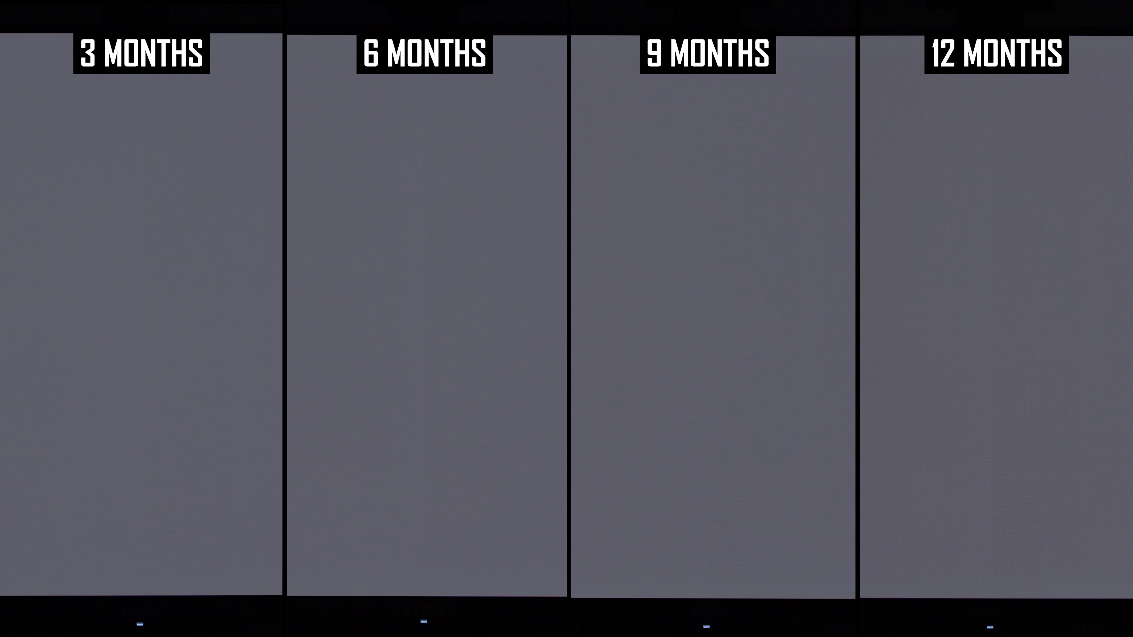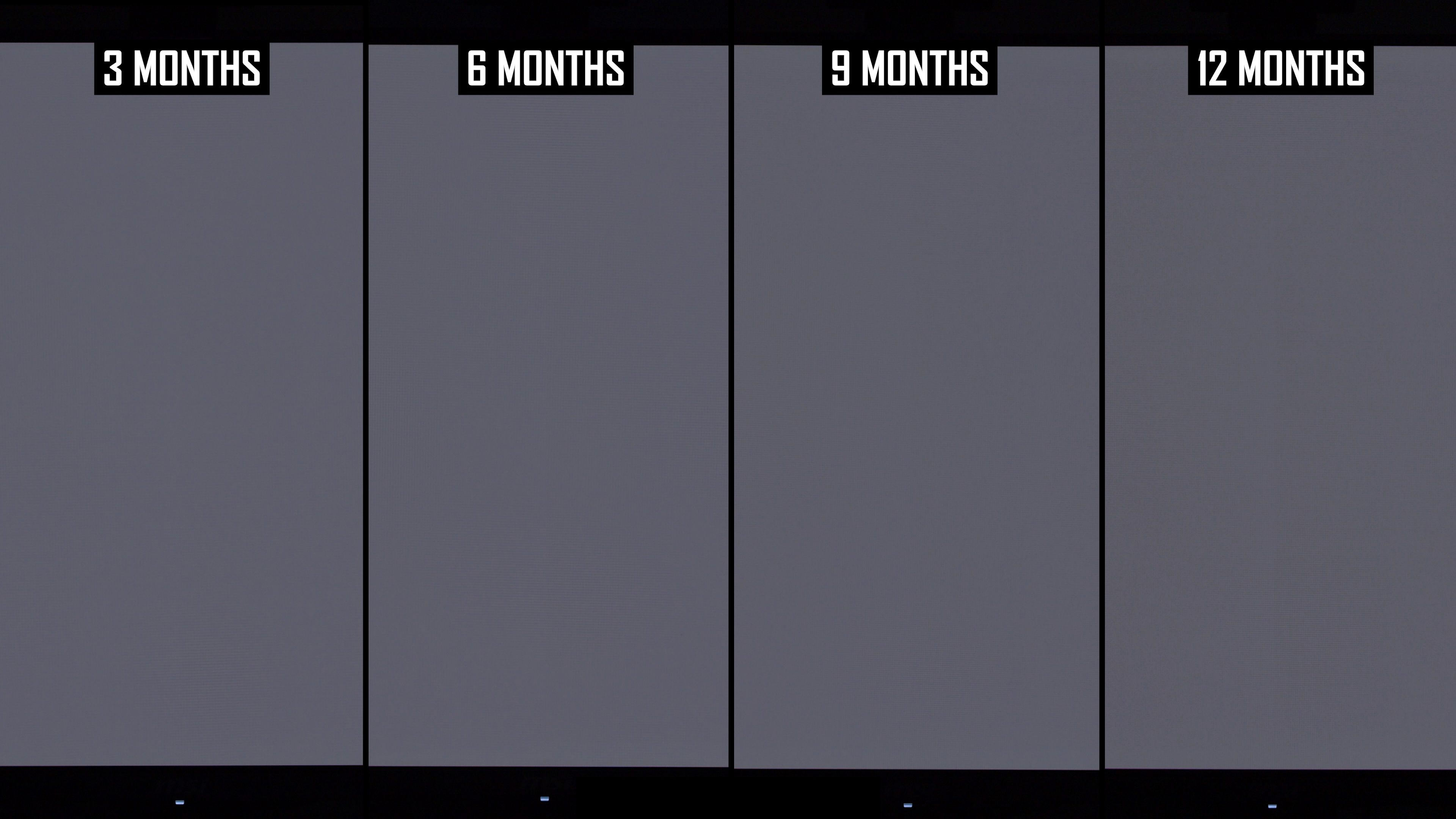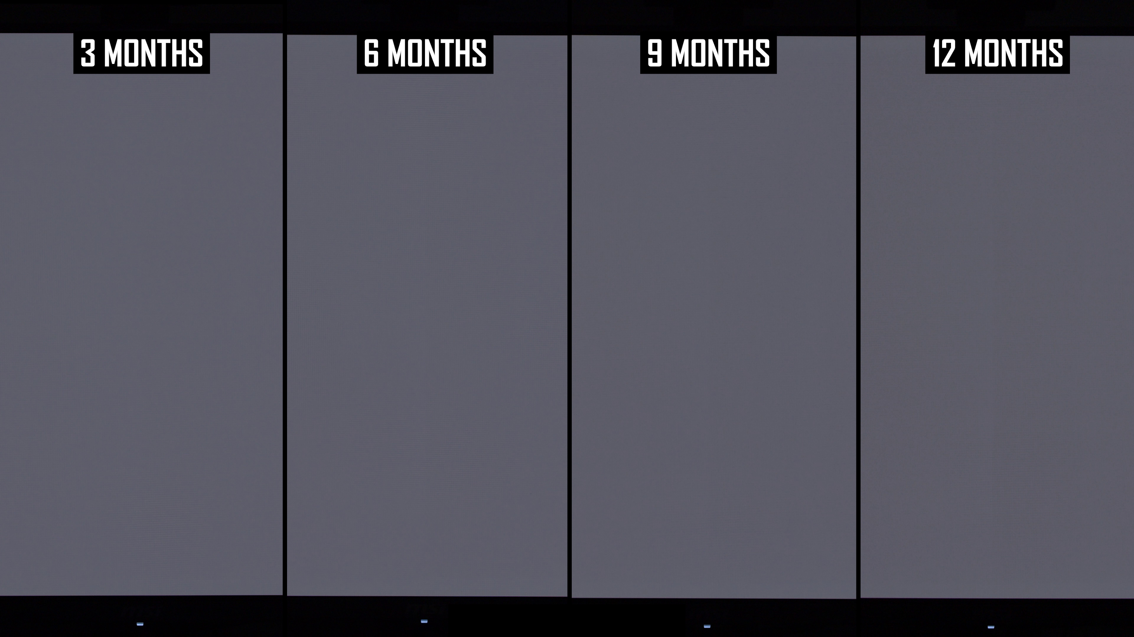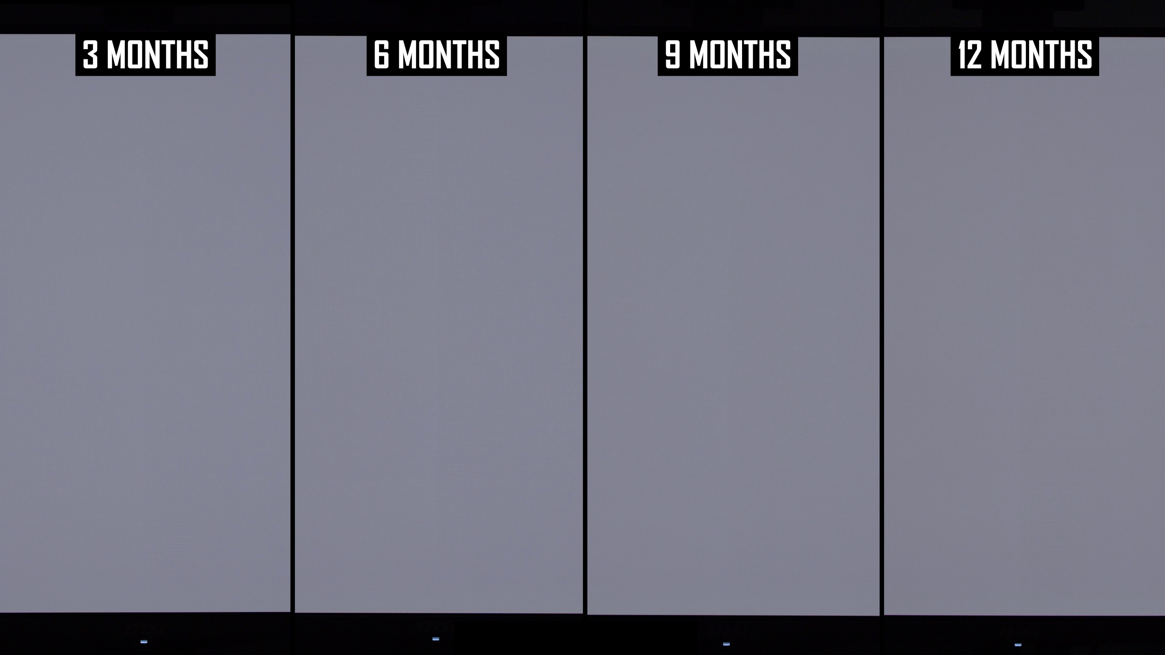 Modificările de lună la lună arată că linia verticală a fost mai vizibilă în actualizarea de 12 luni decât la 9 luni. Interesant este că, în actualizarea anterioară, am constatat că această linie este puțin mai puțin arsă în 9 luni, comparativ cu 6 luni, ceea ce sugerează că ciclul de compensare și -a redus vizibilitatea. În rezultatele de 12 luni, nivelul de ardere a liniei verticale este mai asemănător cu nota de 6 luni decât nota de 9 luni și, de obicei, puțin mai rău decât la 6 luni. Dacă luăm cel mai rău rezultat al imaginilor de 6 sau 9 luni, așa este practic ecranul după 12 luni.