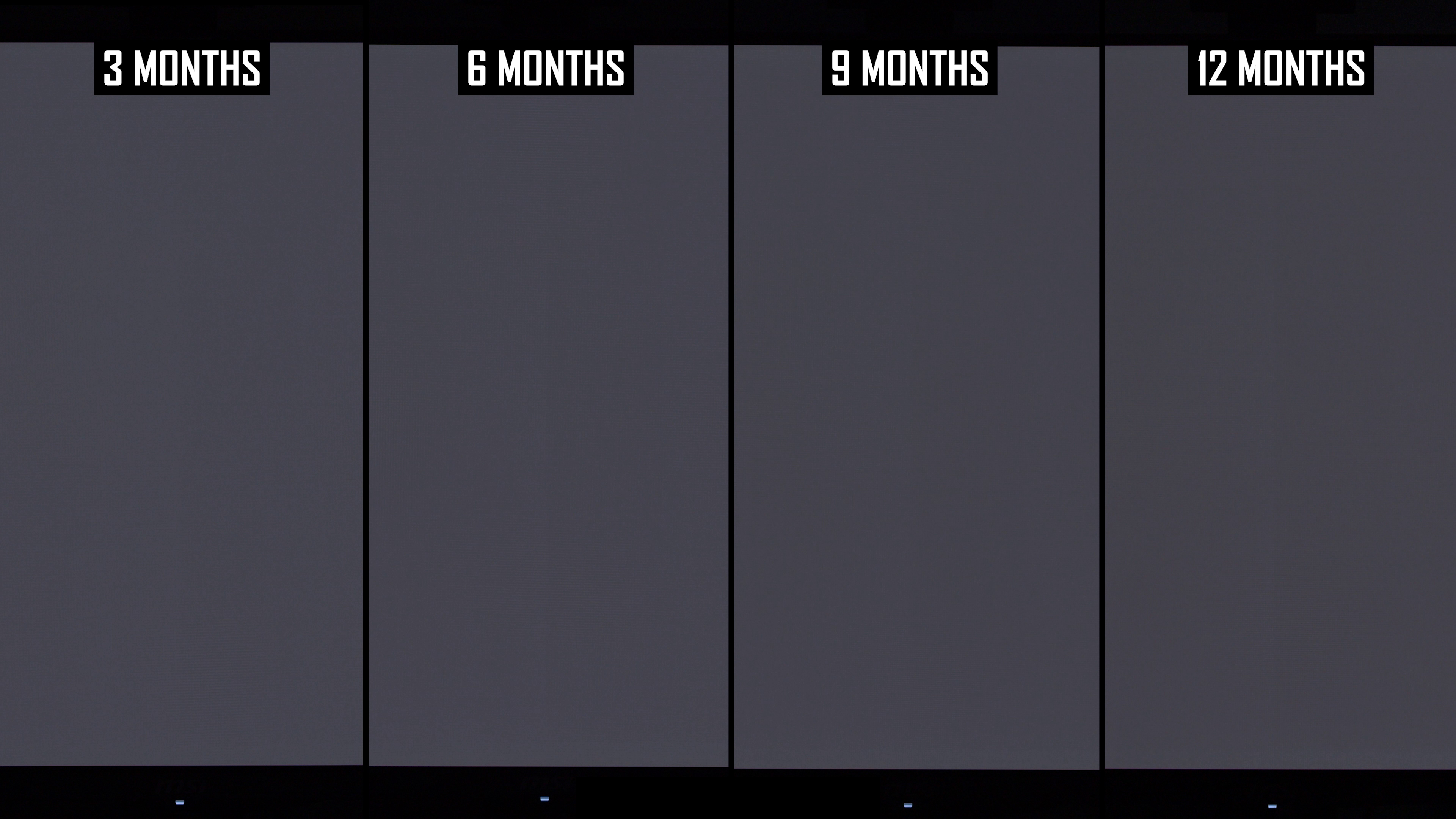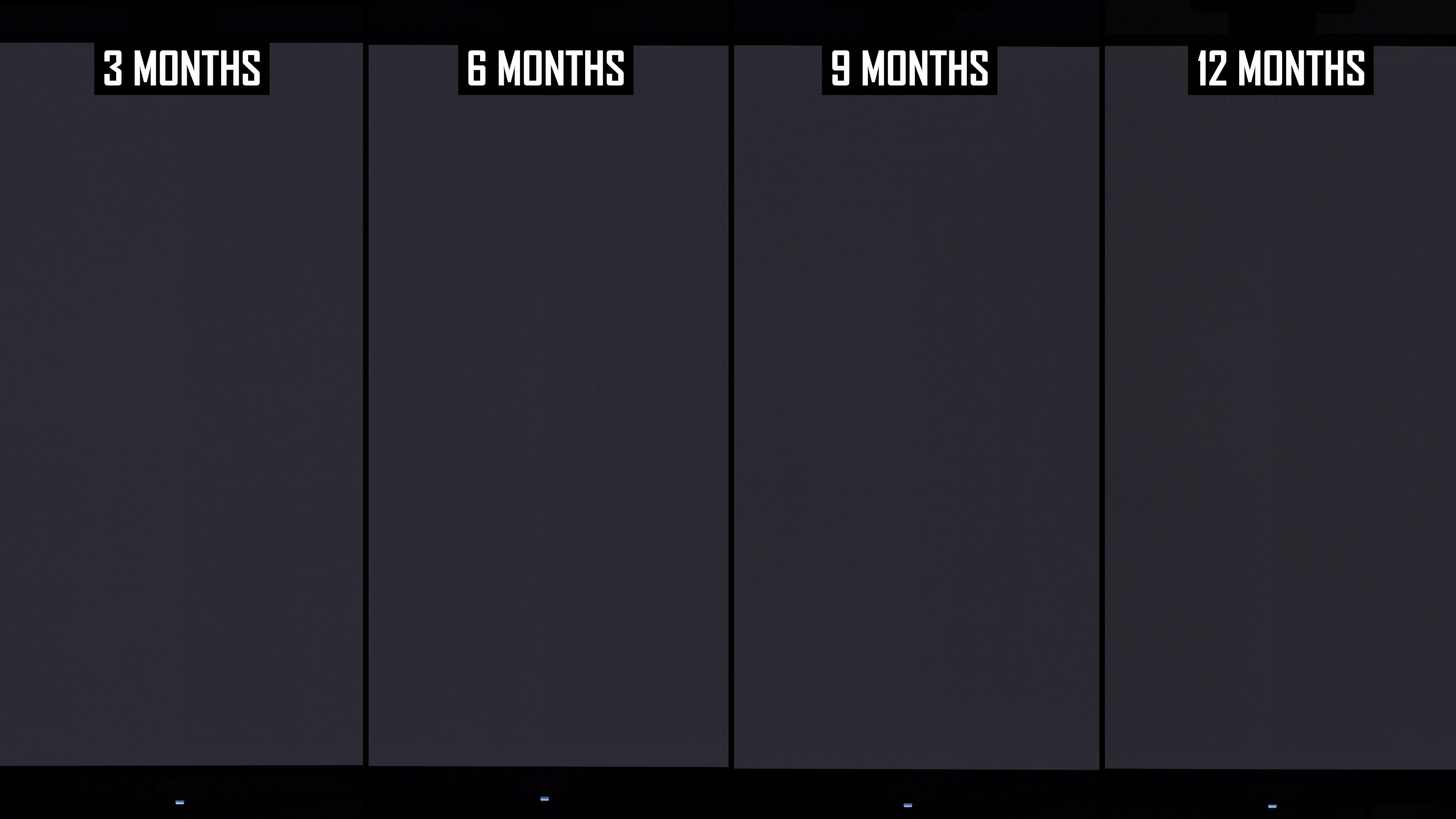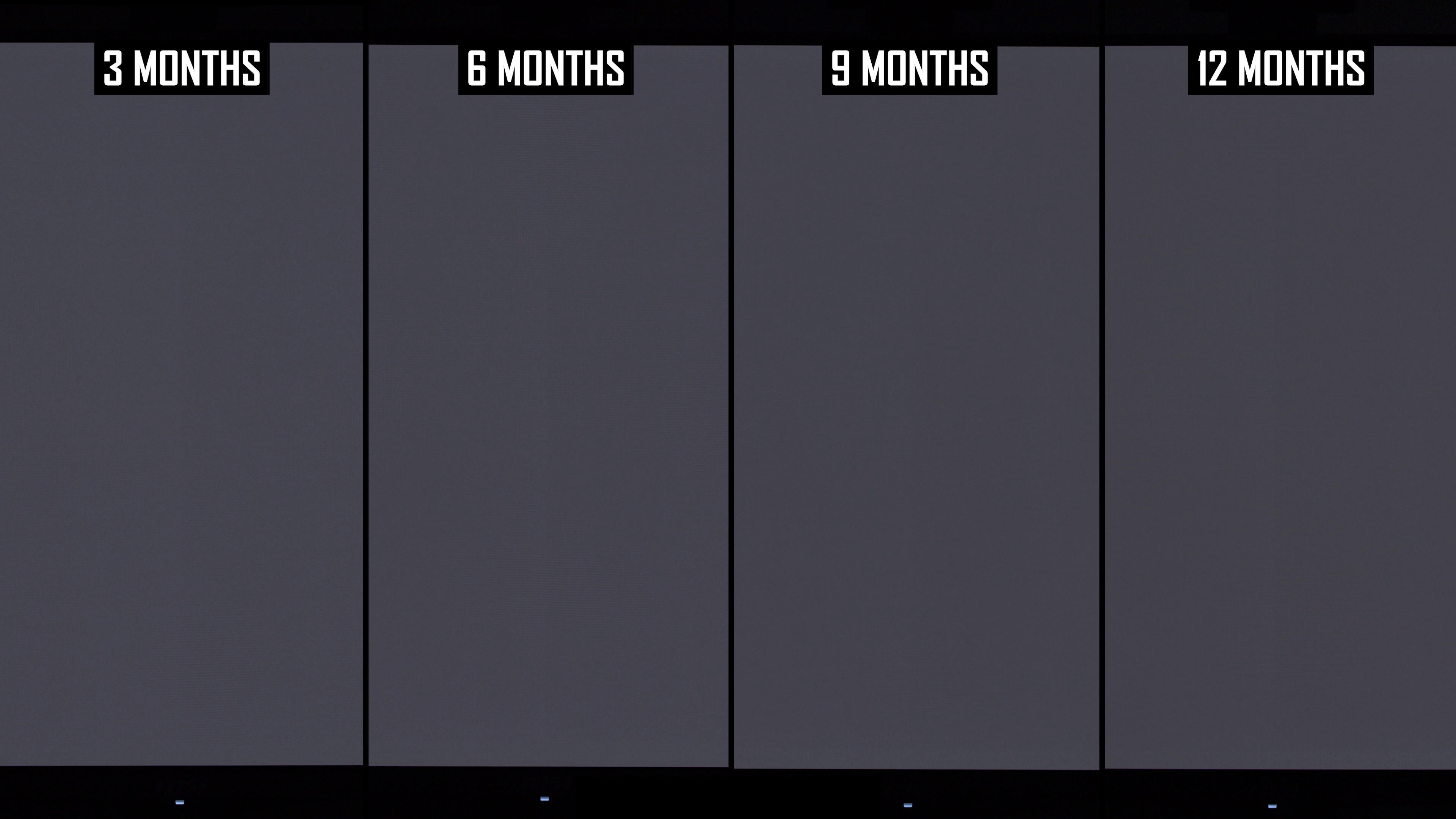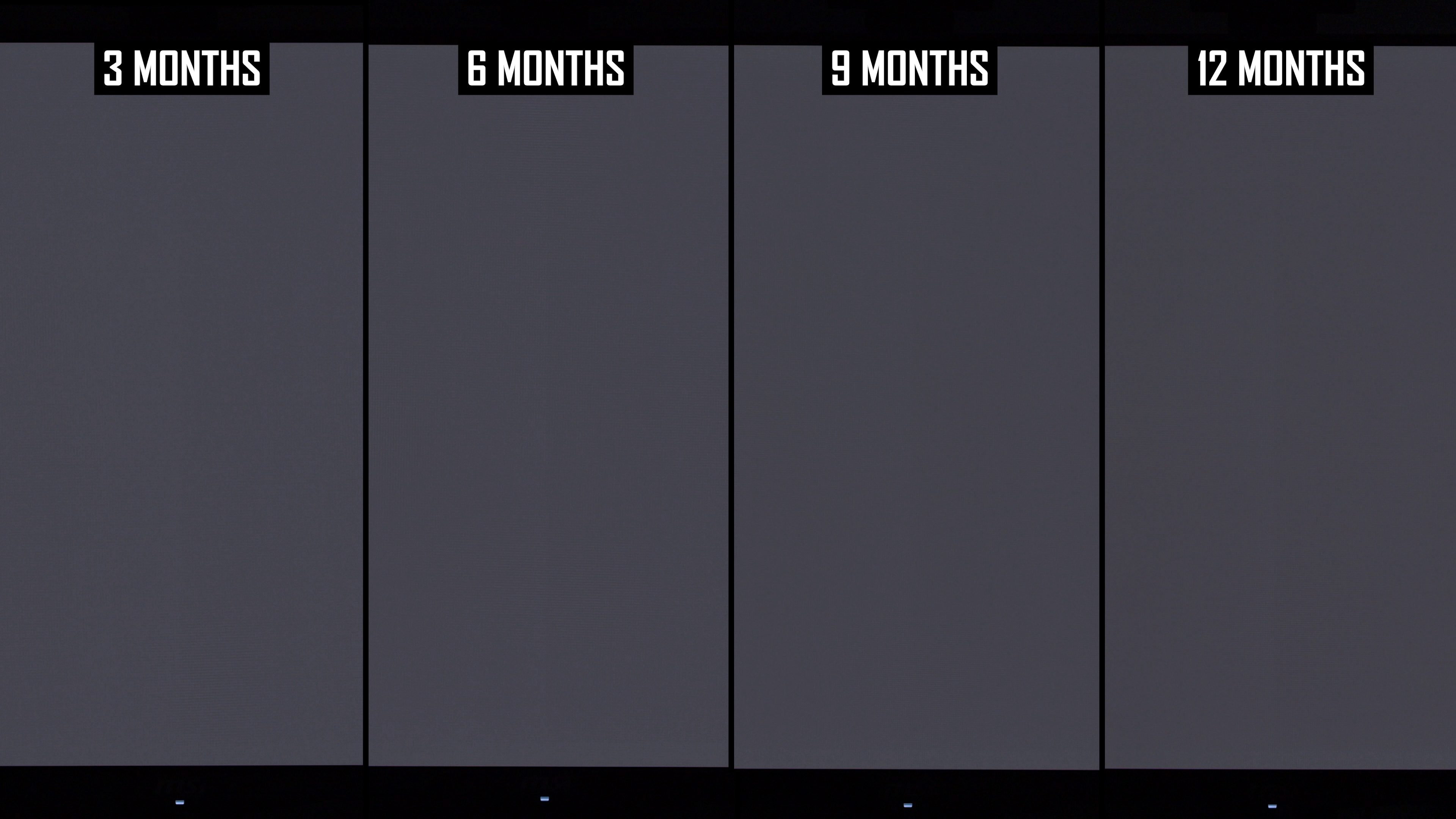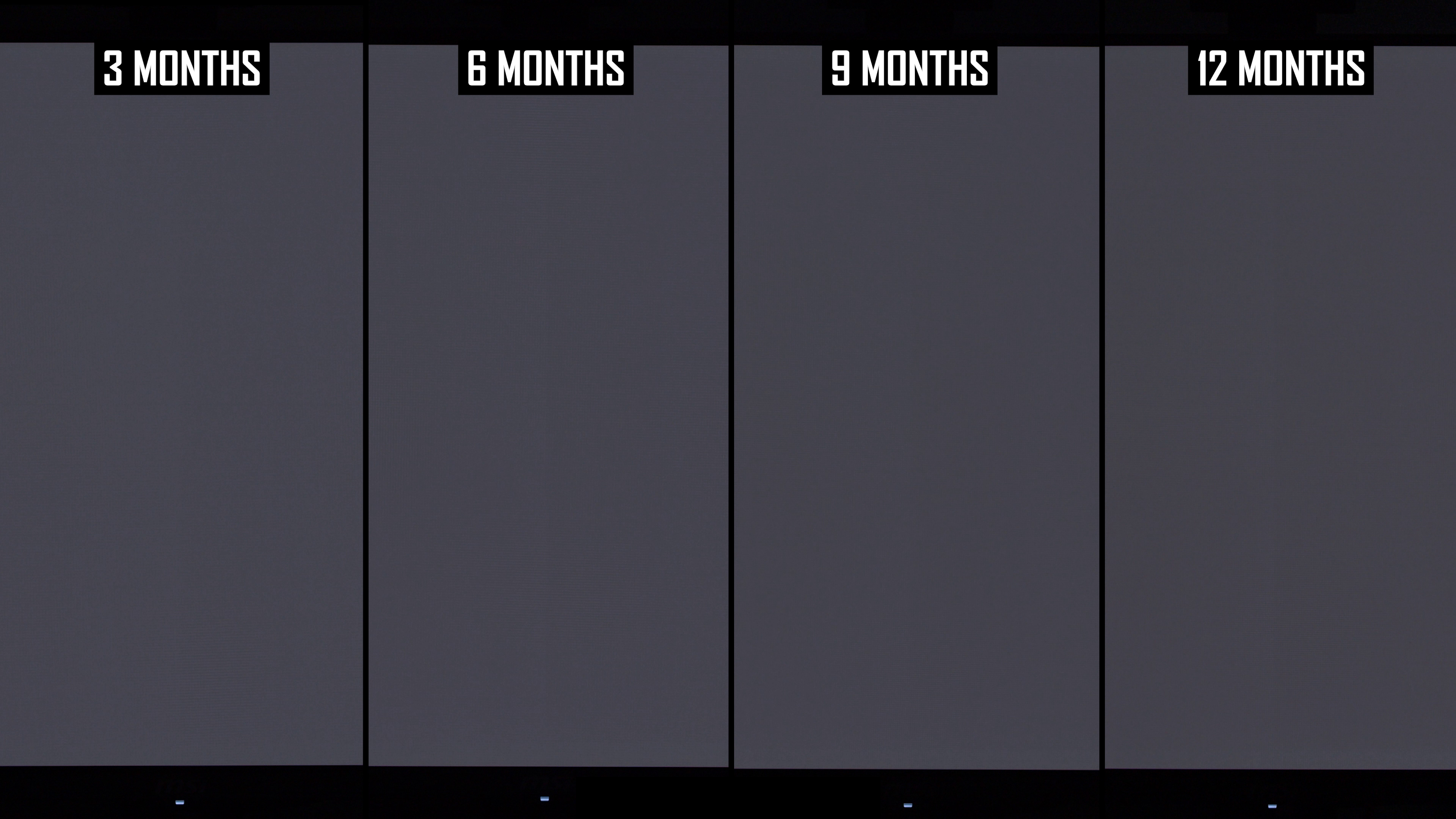 Modificările de lună la lună arată că linia verticală a fost mai vizibilă în actualizarea de 12 luni decât la 9 luni. Interesant este că, în actualizarea anterioară, am constatat că această linie este puțin mai puțin arsă în 9 luni, comparativ cu 6 luni, ceea ce sugerează că ciclul de compensare și -a redus vizibilitatea. În rezultatele de 12 luni, nivelul de ardere a liniei verticale este mai asemănător cu nota de 6 luni decât nota de 9 luni și, de obicei, puțin mai rău decât la 6 luni. Dacă luăm cel mai rău rezultat al imaginilor de 6 sau 9 luni, așa este practic ecranul după 12 luni.