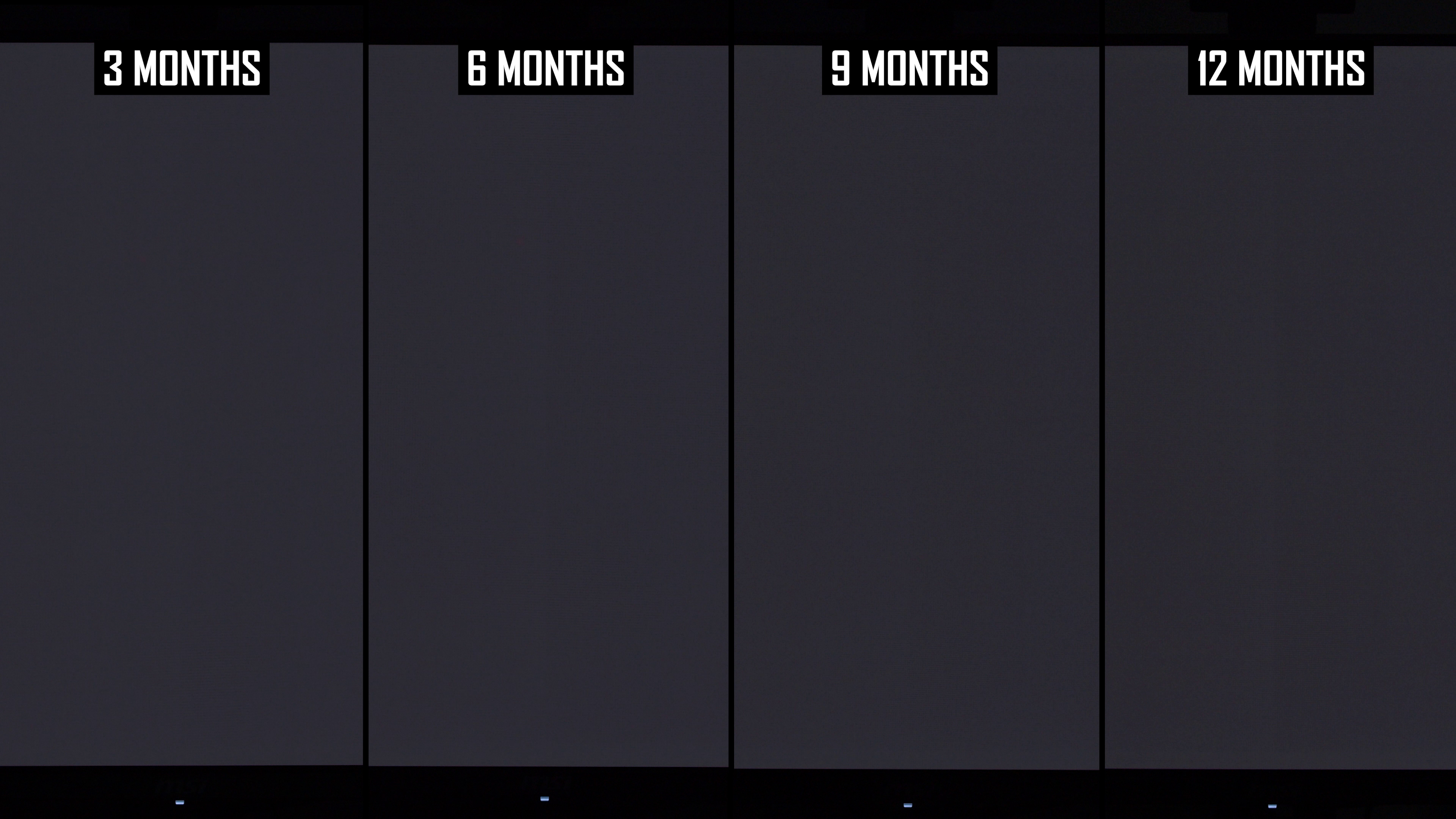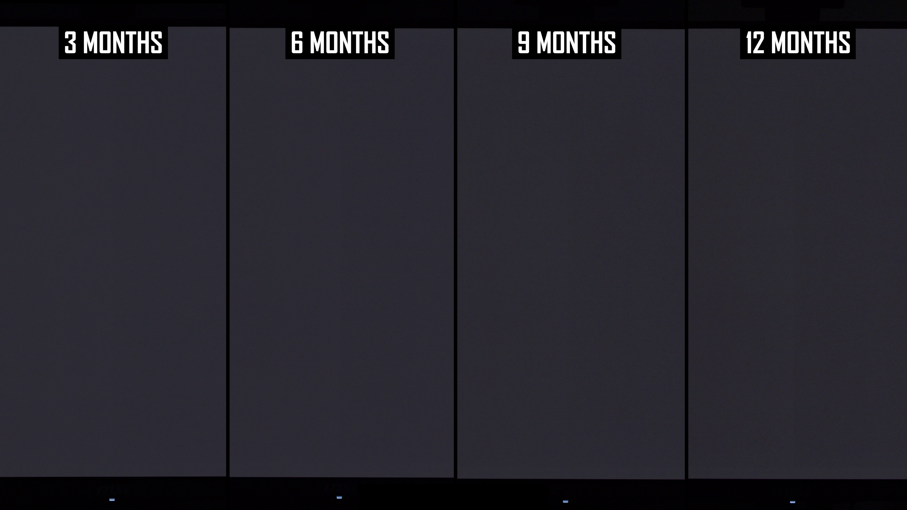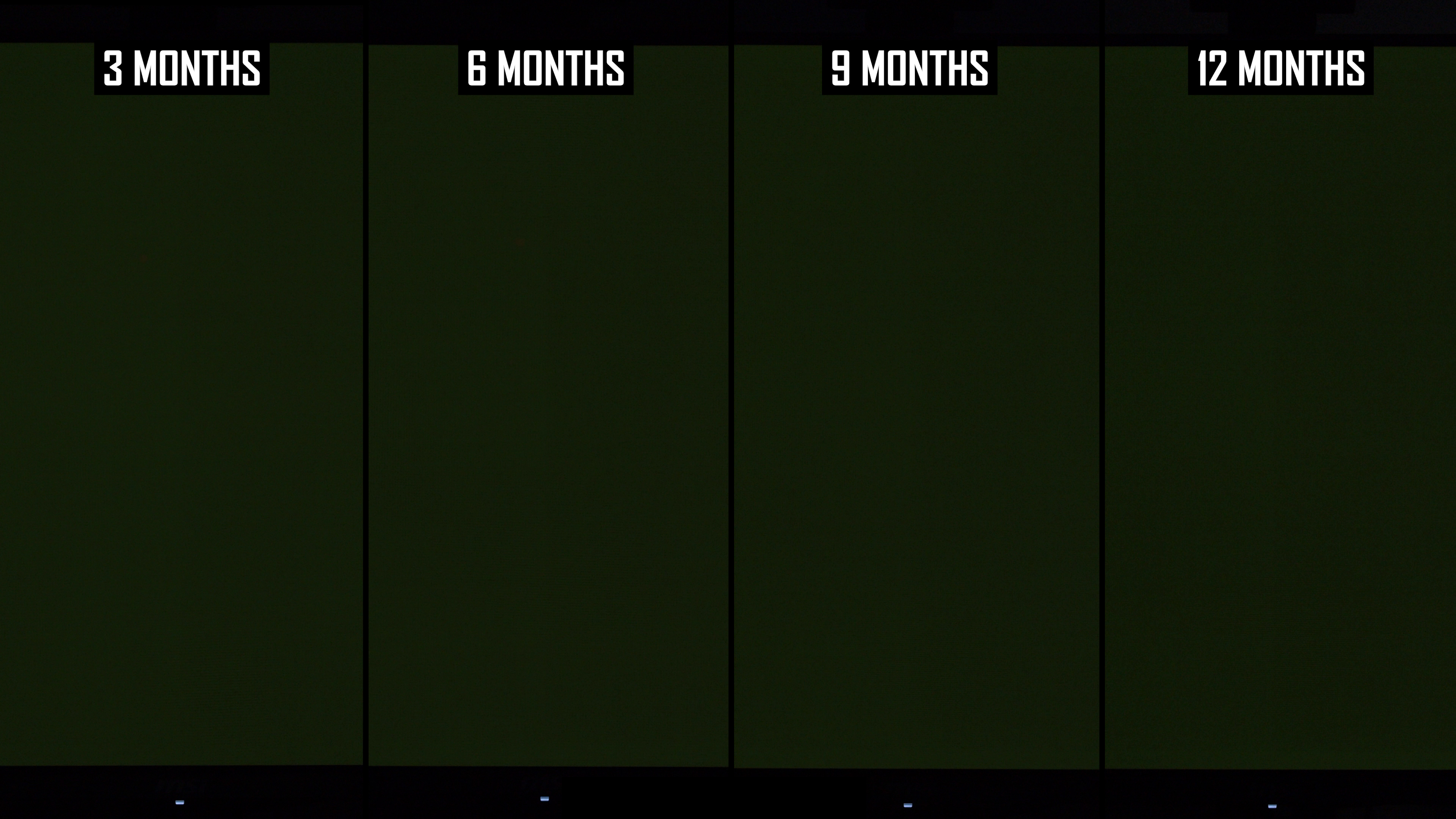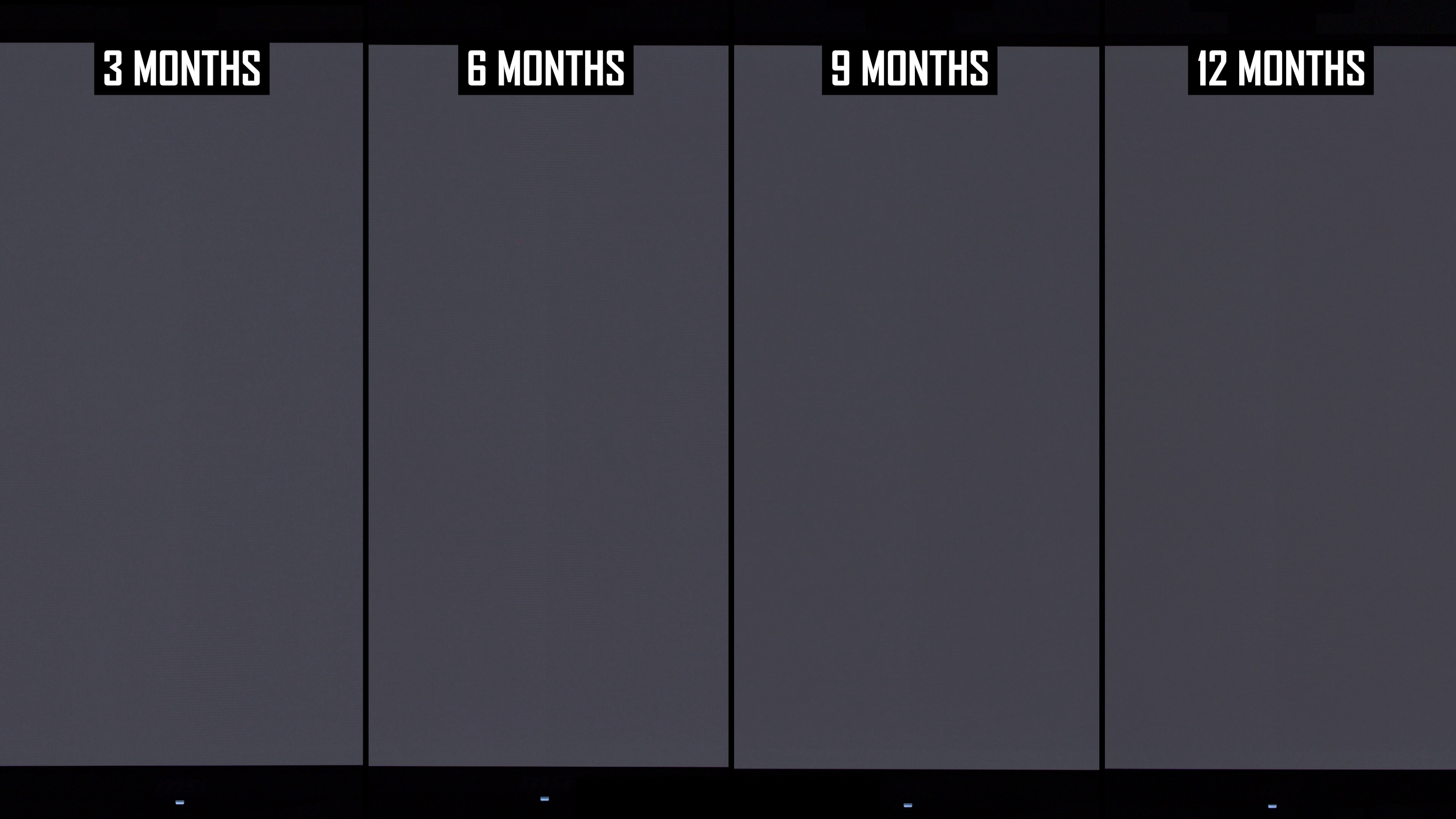 Modificările de lună la lună arată că linia verticală a fost mai vizibilă în actualizarea de 12 luni decât la 9 luni. Interesant este că, în actualizarea anterioară, am constatat că această linie este puțin mai puțin arsă în 9 luni, comparativ cu 6 luni, ceea ce sugerează că ciclul de compensare și -a redus vizibilitatea. În rezultatele de 12 luni, nivelul de ardere a liniei verticale este mai asemănător cu nota de 6 luni decât nota de 9 luni și, de obicei, puțin mai rău decât la 6 luni. Dacă luăm cel mai rău rezultat al imaginilor de 6 sau 9 luni, așa este practic ecranul după 12 luni.