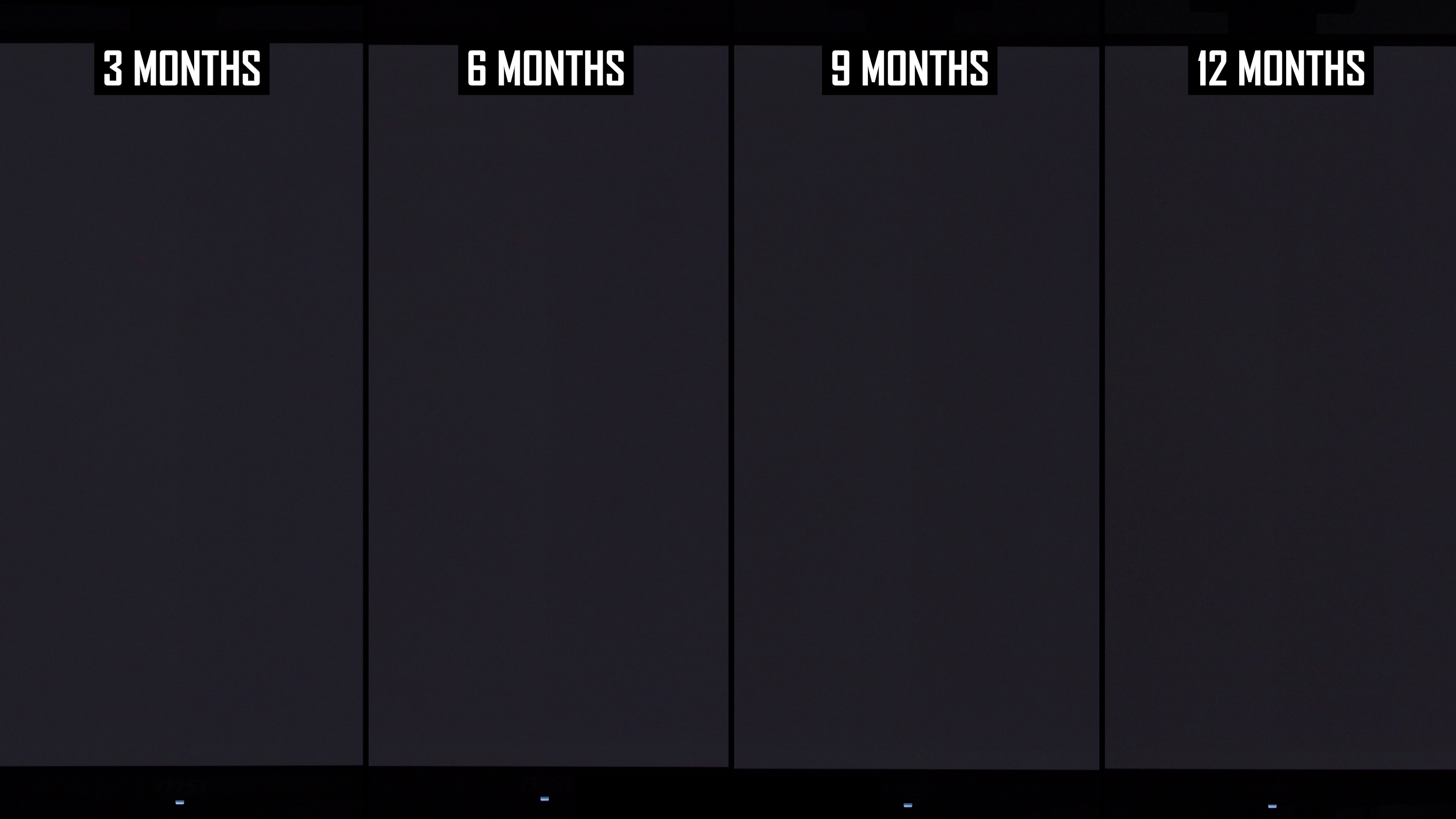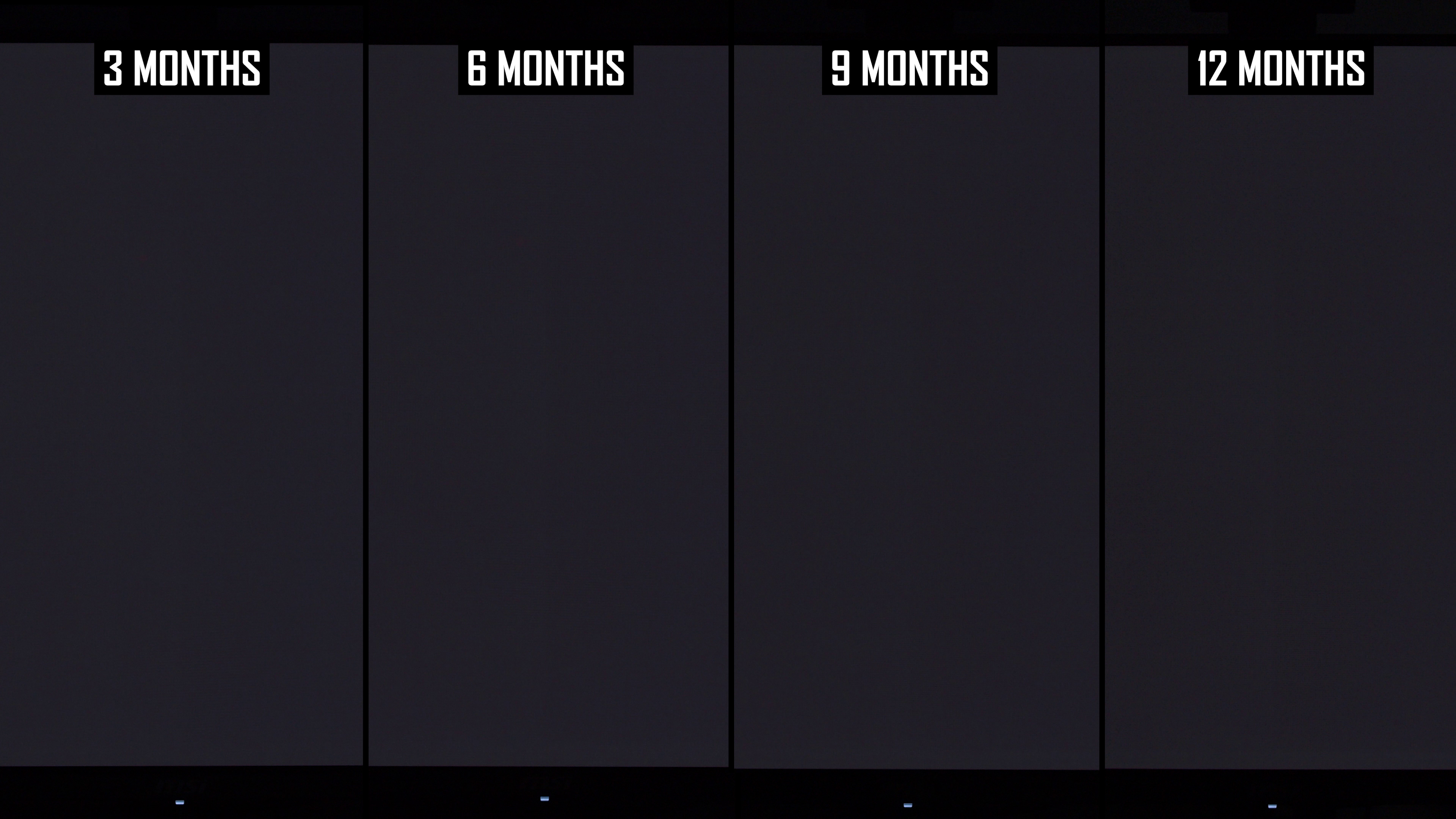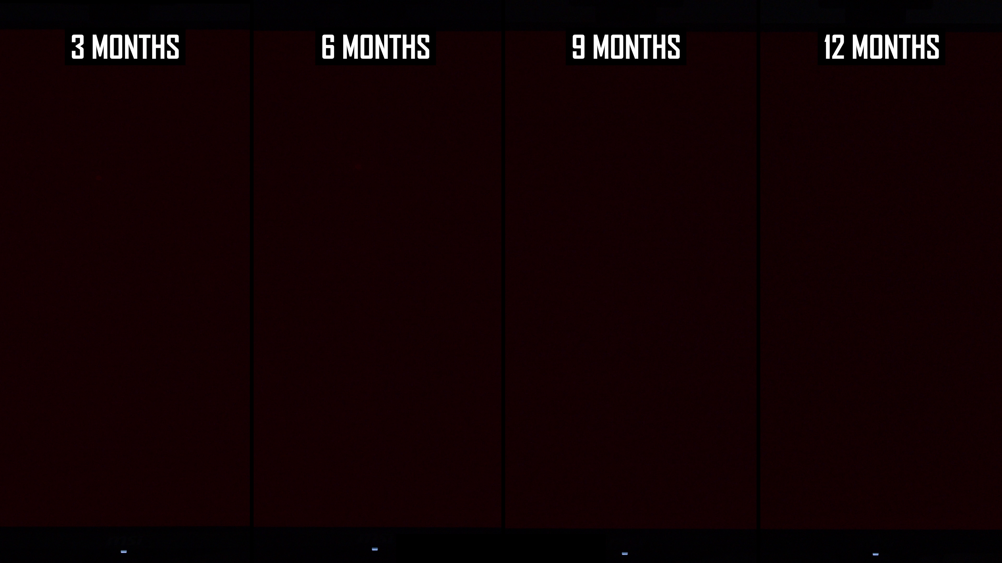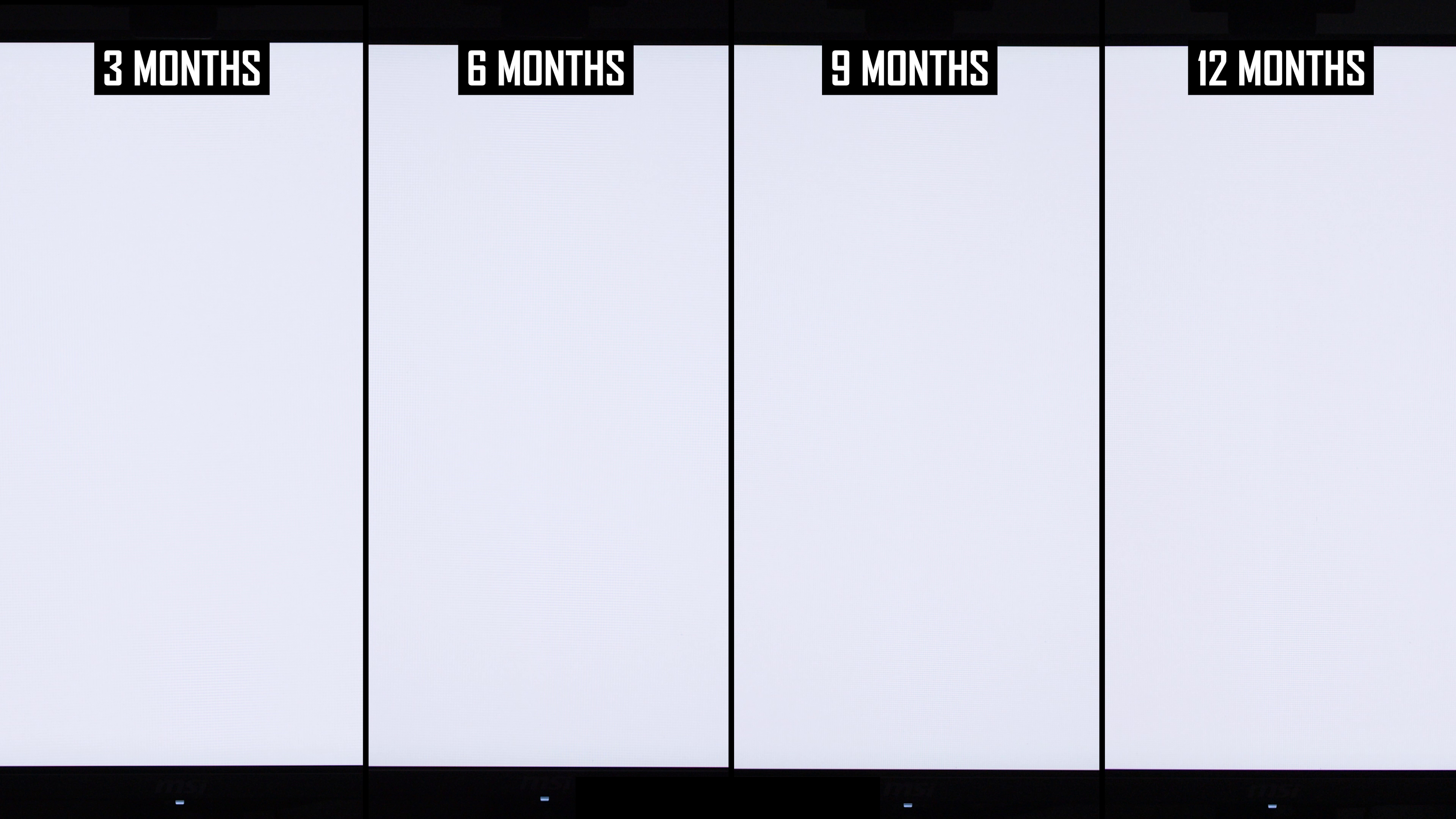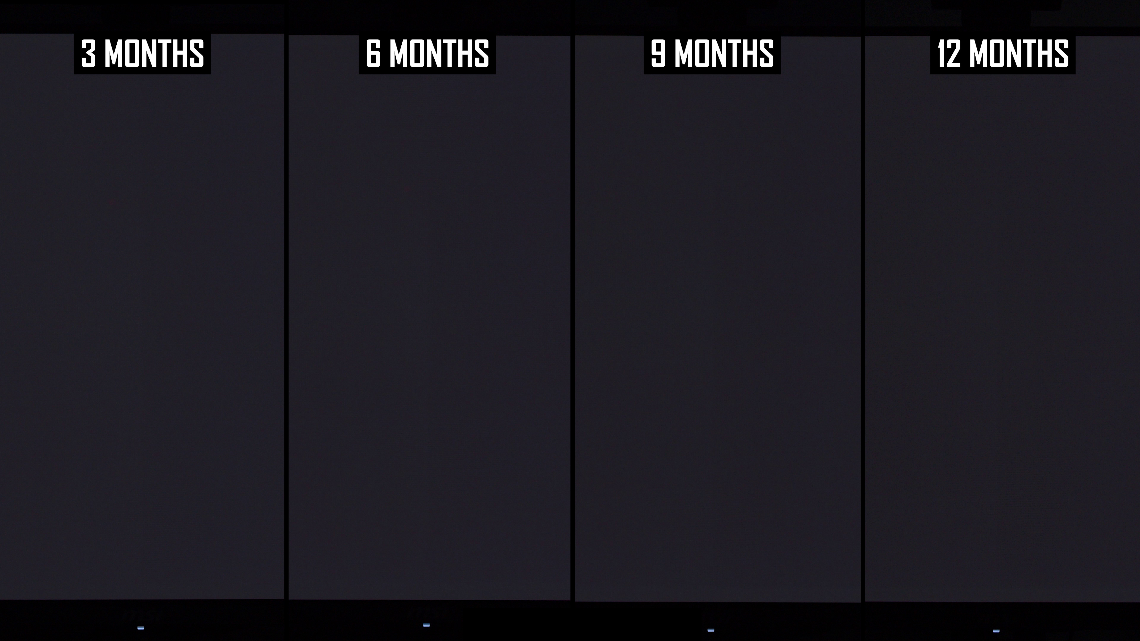 Modificările de lună la lună arată că linia verticală a fost mai vizibilă în actualizarea de 12 luni decât la 9 luni. Interesant este că, în actualizarea anterioară, am constatat că această linie este puțin mai puțin arsă în 9 luni, comparativ cu 6 luni, ceea ce sugerează că ciclul de compensare și -a redus vizibilitatea. În rezultatele de 12 luni, nivelul de ardere a liniei verticale este mai asemănător cu nota de 6 luni decât nota de 9 luni și, de obicei, puțin mai rău decât la 6 luni. Dacă luăm cel mai rău rezultat al imaginilor de 6 sau 9 luni, așa este practic ecranul după 12 luni.