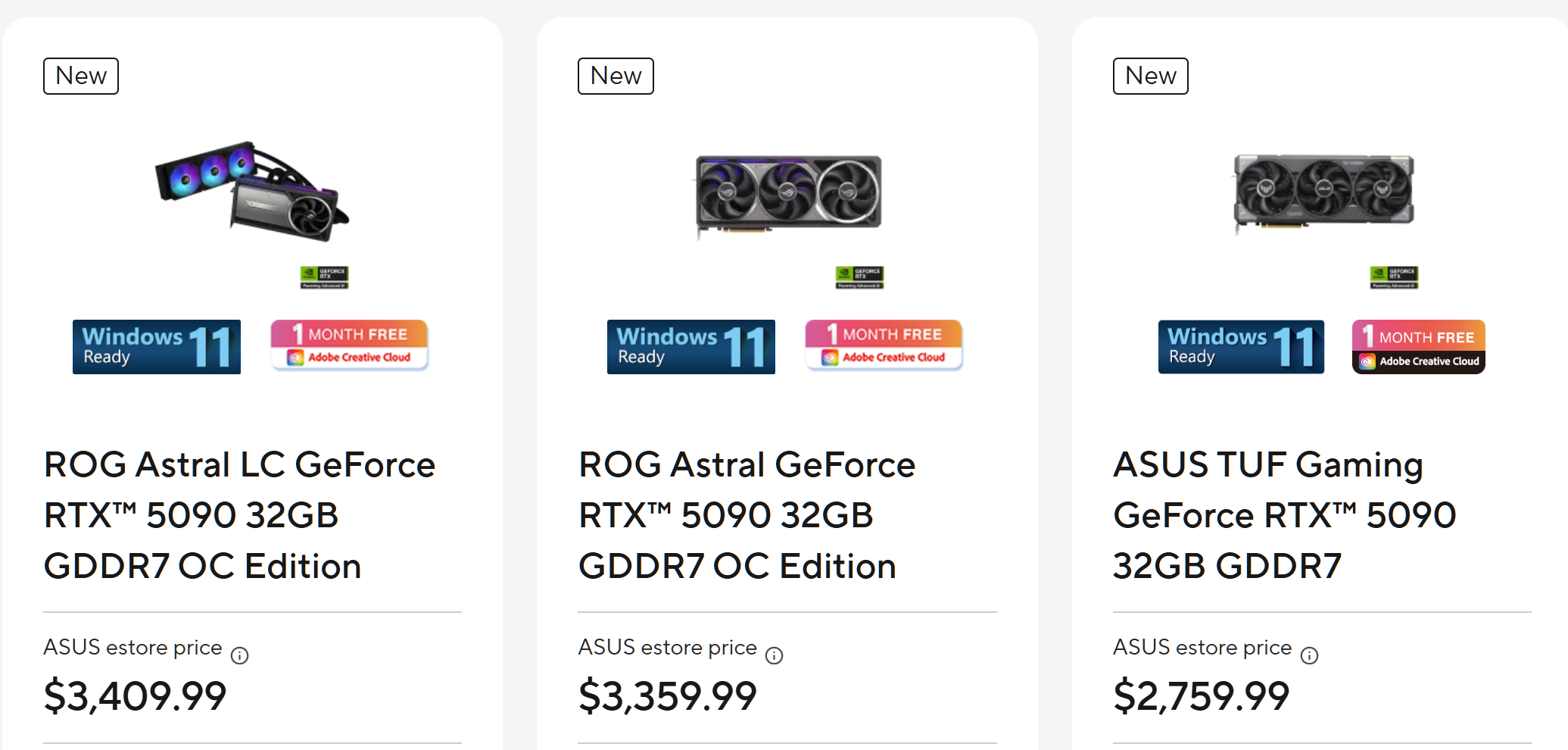 ASUS, de exemplu, a crescut prețul GeForce RTX 5090 Astral OC recent. Era deja o sumă de 3.079 de dolari la începutul lunii februarie. Acum, este de 3.359 dolari, o creștere de 280 USD. MSRP -ul NVIDIA pentru RTX 5090, amintiți -vă, este de 1.999 USD. Și în timp ce cărțile de înaltă calitate ca acestea sunt mai scumpe, Astral OC a fost presupus să fie 2.800 USD.