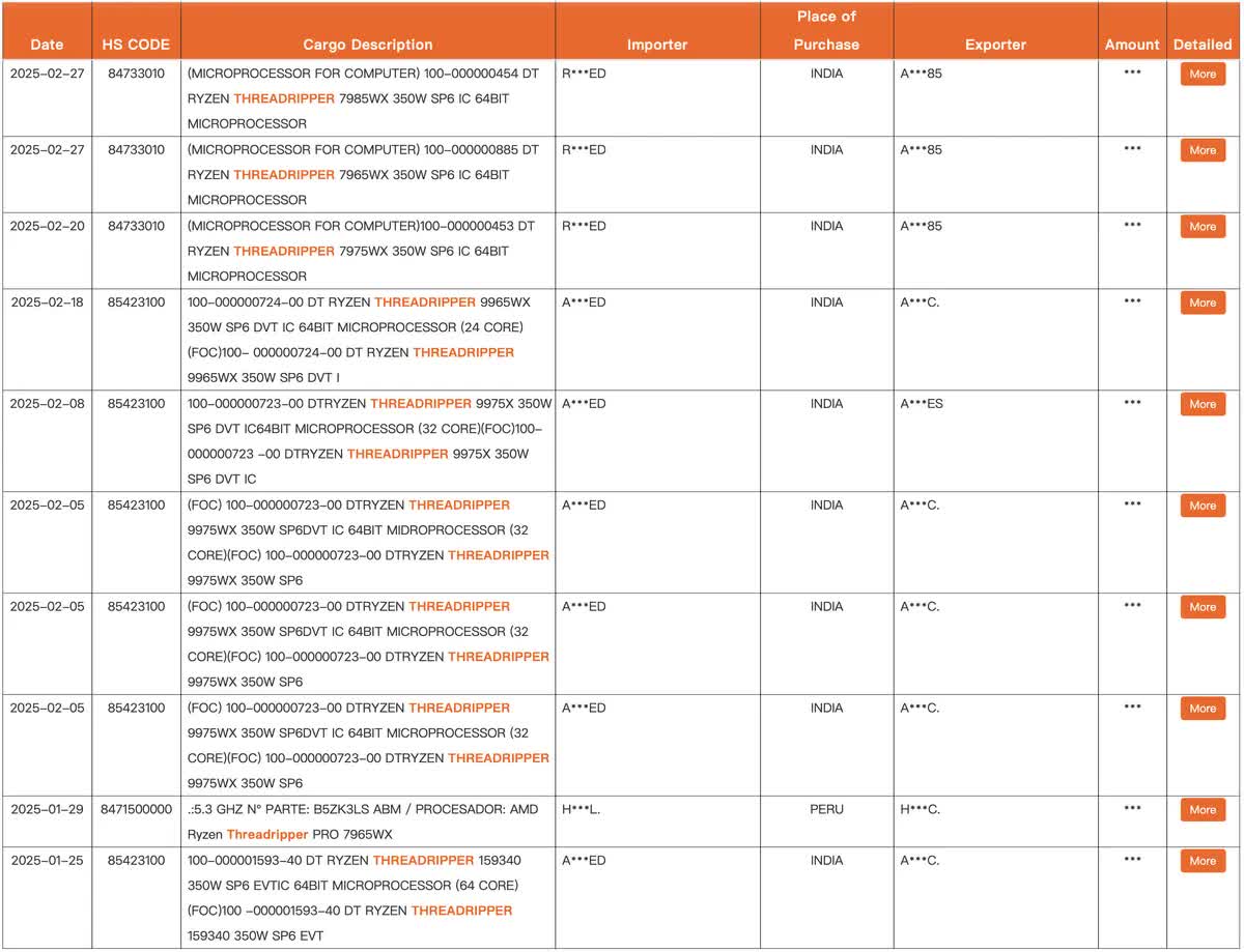 Scurgerile, observate pentru prima dată în transportul manifestă de către utilizator @Olrak29_ (de când a fost șters), confirmă existența 32 de nuclee Threadripper Pro 9975WX și cu 24 de nuclee Threadripper Pro 9965WX. Ambele procesoare vor avea hiperthreading, cu 64 și, respectiv, 48 de fire. Acest lucru se aliniază cu predecesorii lor din seria Threadripper Pro 7000, care a oferit, de asemenea, aceleași configurații de bază și fir. Cu toate acestea, noile modele vor beneficia de arhitectura Zen 5, promițând performanțe și eficiență îmbunătățite.