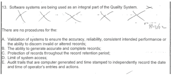 Preocupările comune de FDA legate de software includ erori software, trasee de audit lipsă, defecte de securitate, lipsa proceselor de rezervă și validarea slabă a sistemelor software.