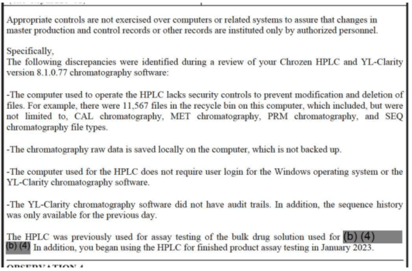 - Probleme de fabricație și calitate: Nerespectarea Practici actuale de fabricație bune (CGMP), care asigură consistența și siguranța în producția de droguri.