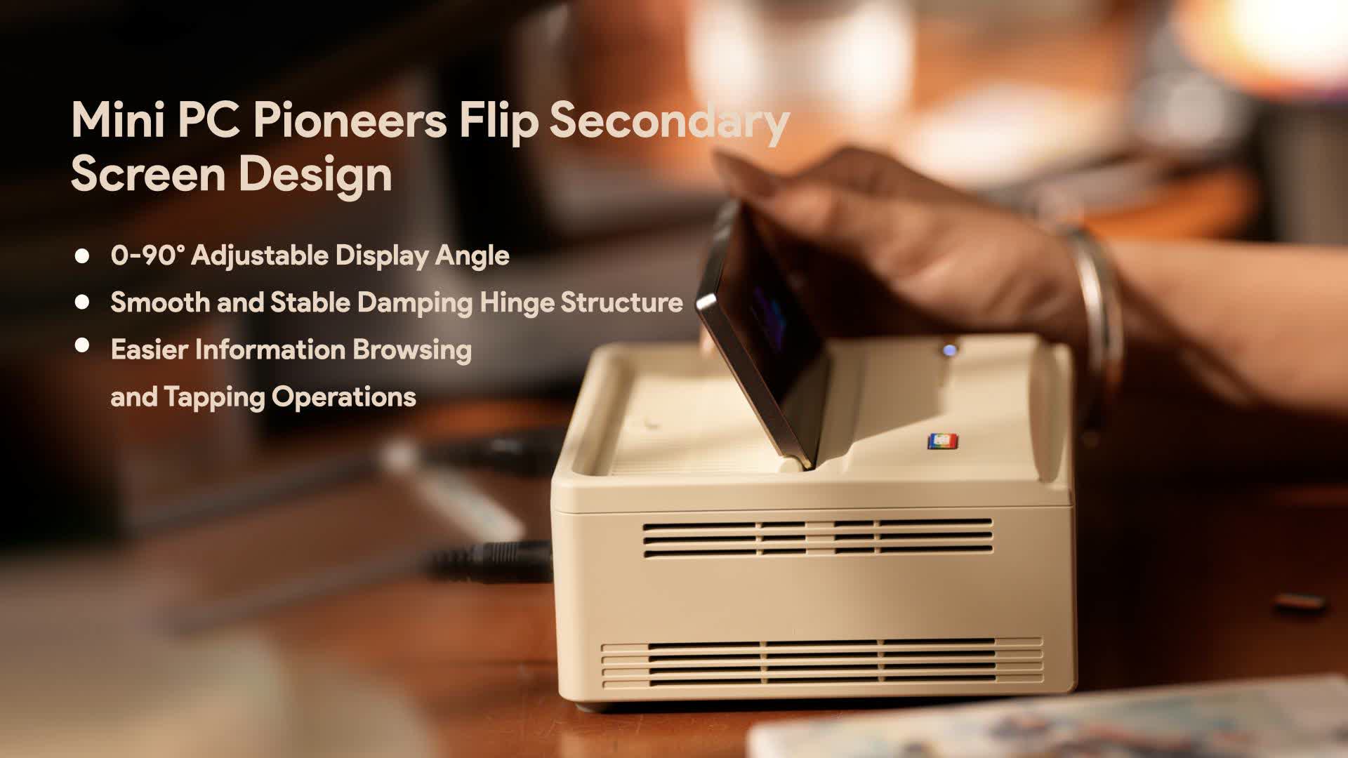 Acestea fiind spuse, PC-urile minuscule cu afișaje flip-up par a fi o tendință din ce în ce mai mare pentru 2025. Această versiune urmează AooStar G-FLIP 370, un alt mini-PC inspirat retro-deși acesta se bazează mai mult într-un joc estetic al lui Game Boy.