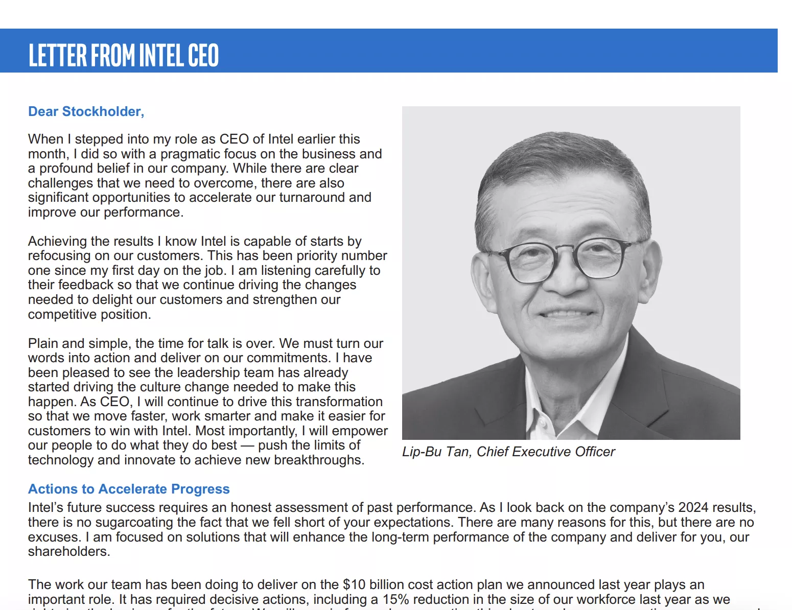 Ceva de așteptat cu nerăbdare: Lip-Bu Tan s-a alăturat Intel în calitate de CEO într-un moment esențial, deoarece gigantul semiconductor se confruntă cu provocări semnificative în redobândirea avantajului său competitiv. În prima sa scrisoare către acționari, Tan a prezentat o viziune clară pentru viitorul Intel, subliniind un dublu accent pe inovația produsului și eficiența operațională. Mesajul său a fost neclintit: Intel trebuie să -și simplifice operațiunile, să reducă costurile și să -și îndeplinească promisiunile de a -și recăpăta avantajul competitiv în industria tehnologică.