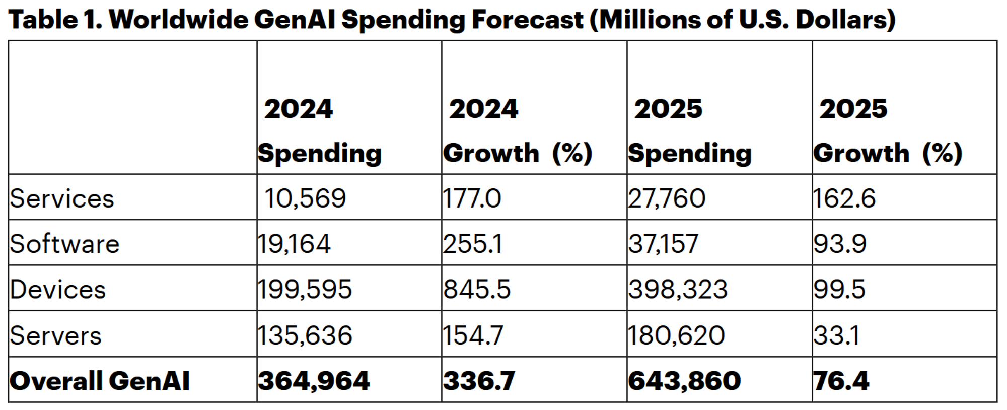 O analiză recentă Gartner relatează că cheltuielile cu AI generative (Genai) vor crește la niveluri fără precedent în 2025, chiar dacă foarte puține organizații înțeleg cum această tehnologie poate ajuta întreprinderile lor sau perspectivele de profit. Experții consideră că această tendință „paradox” a pieței va persista până în 2025 și 2026.