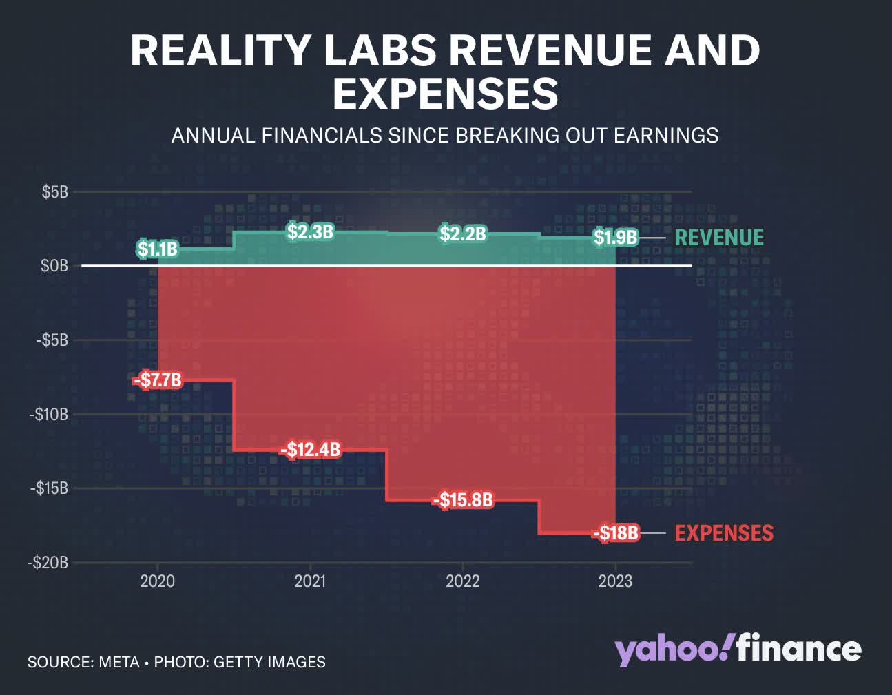 În ciuda creșterii cheltuielilor, veniturile anuale ale diviziei au scăzut constant din 2021 din cauza vânzărilor slabe și a eșecului continuu de a câștiga tracțiune mainstream. Analistul Wall Street, Gene Munster, de la Deepwater Asset Management, a declarat pentru Yahoo Finance că divizia este un „dezastru financiar” care trage stocul meta.