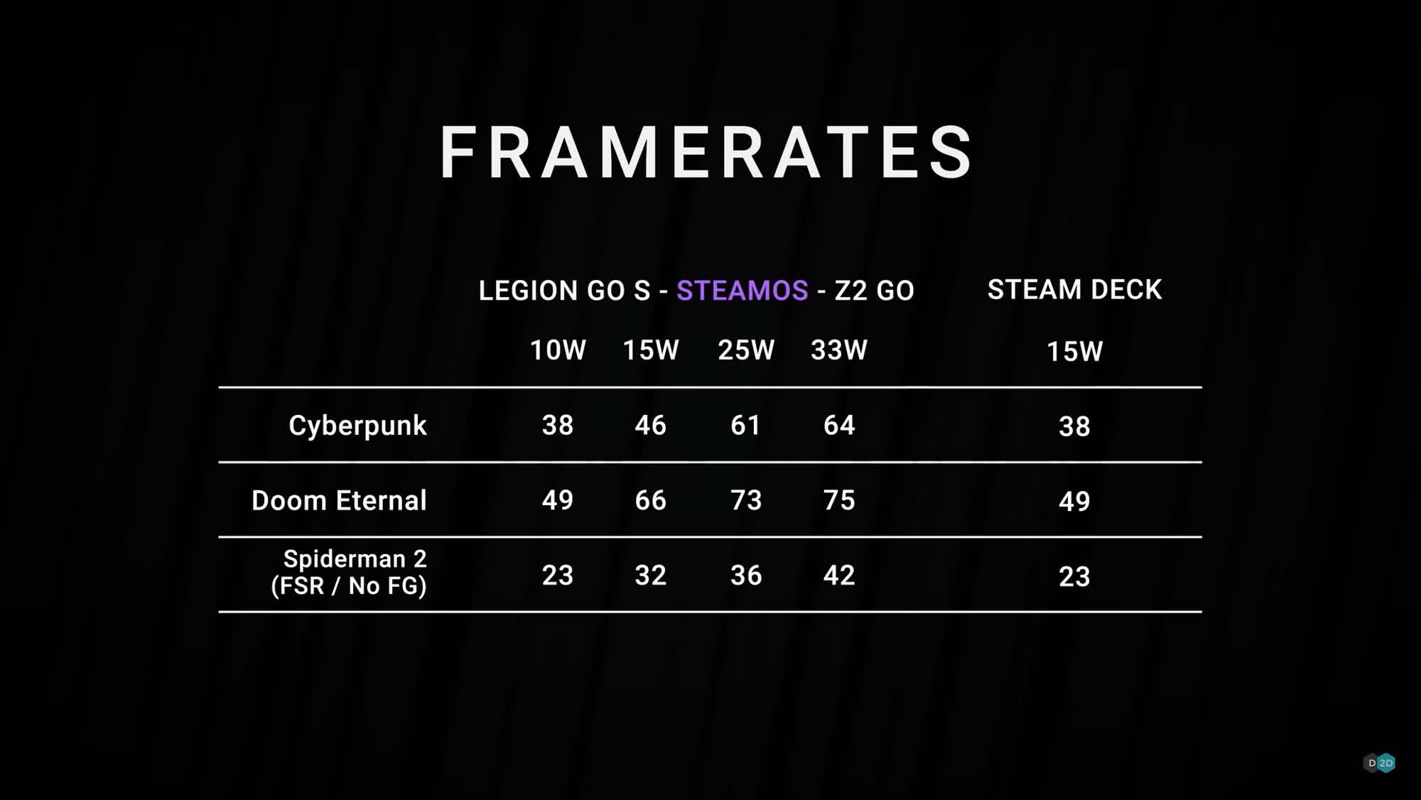 Interesant este că Legiunea merge cu Steamos oferă, de asemenea, performanțe mai bune decât Steam Puntea în majoritatea jocurilor, deși necesită mai multă putere pentru a obține ratele de cadru mai mari.