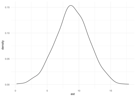 ggplot(sim_runs, aes(x = est)) + geom_density() + theme_minimal()