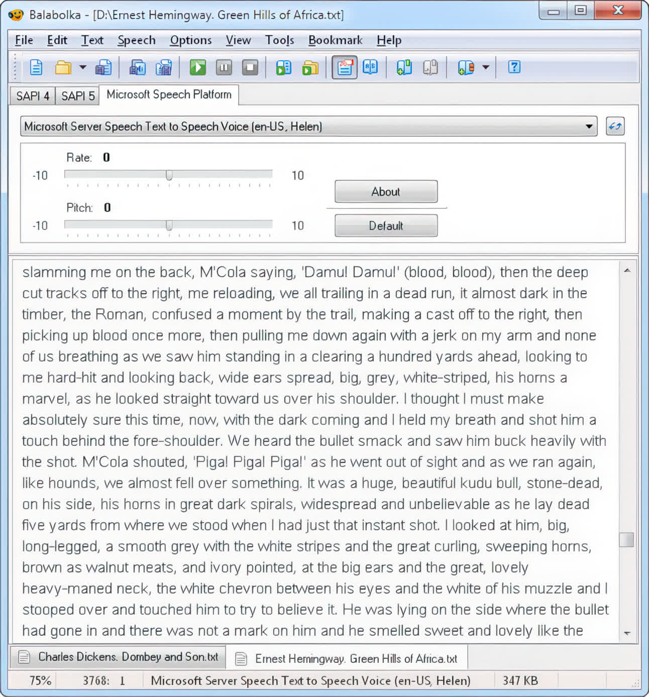Balabolka este un program de text la discurs (TTS). Toate vocile computerului instalate pe sistemul dvs. sunt disponibile pentru Balabolka.