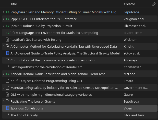 Vestea bună este că folosesc zilnic Zotero, iar pentru a răspunde la aceasta voi folosi sub-colectarea pe care am creat-o pentru articolul Coeficientului de corelație Kendall.