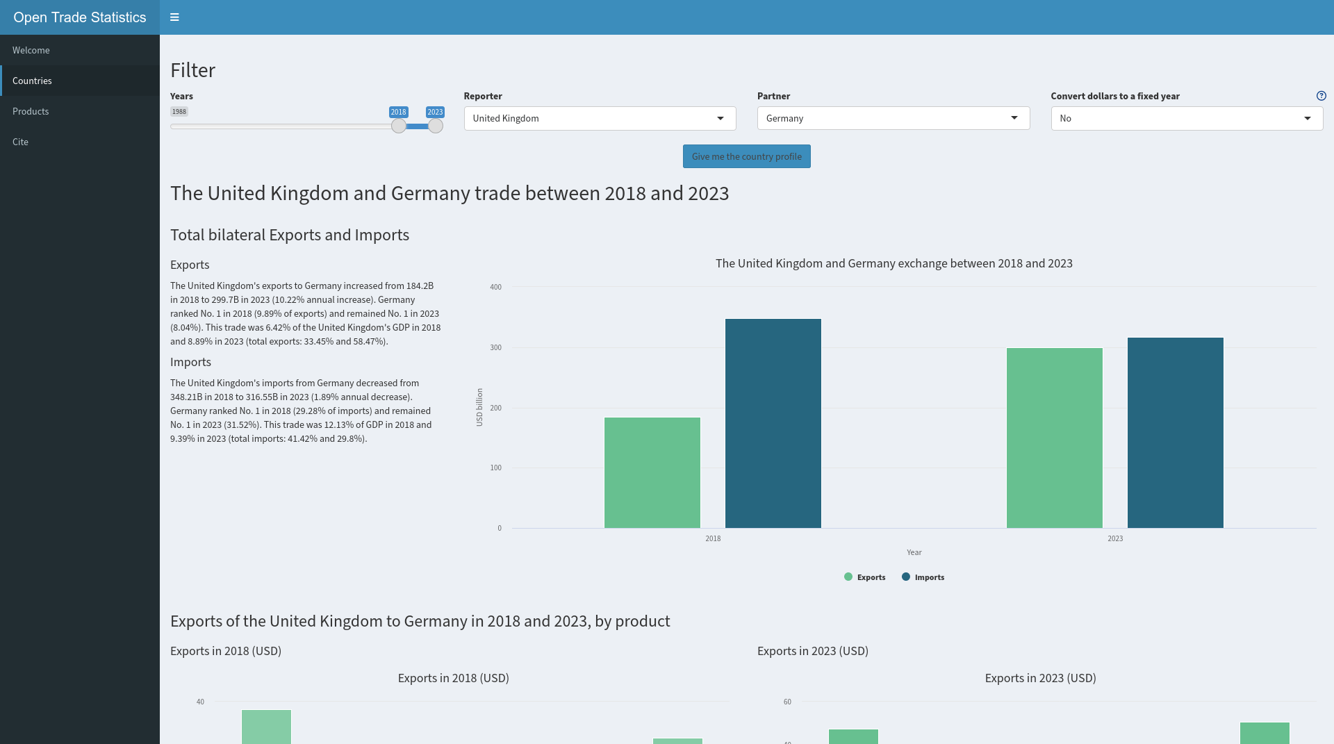 Am adăugat informații comerciale 2023 și informații despre PIB, pe lângă noile parcele care cred că sunt mai ușor de înțeles decât cele anterioare: https://shiny.tradestatistics.io.