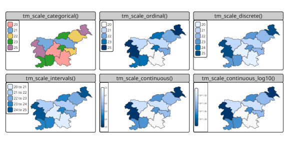 Nowosad, Jakub și Martijn Tennekes. 2025. „Noua carte, în desfășurare, despre vizualizarea datelor spațiale în R.” 14 octombrie 2025. Https://geocompx.org/post/2025/tmap-bp1/.