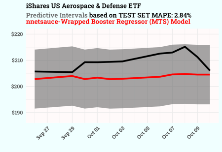 Scopul a fost utilizarea unui model Python puternic, personalizat (nnetsauceînvelișul MTS în jurul unui cyb$BoosterRegressor) și integrează -i rezultatele – predicții și intervale de predicție – în ecosistemul R, permițând o manipulare constantă a datelor cu dplyr și vizualizare de înaltă calitate folosind ggplot2 (și interactiv plotly)