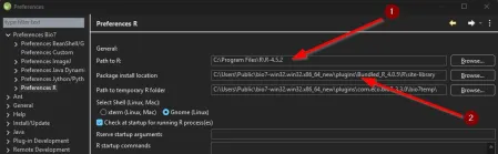 Calea meniului: Preferințe->Preferințe Bio7->Preferințe R