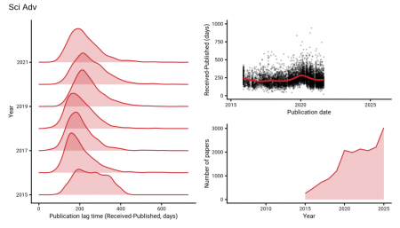Partea leului din acest timp de întârziere este timpul de la depunere până la acceptare (primit-acceptat), cu o mică contribuție din timpul necesar publicării oficiale a articolului (acceptat-publicat).