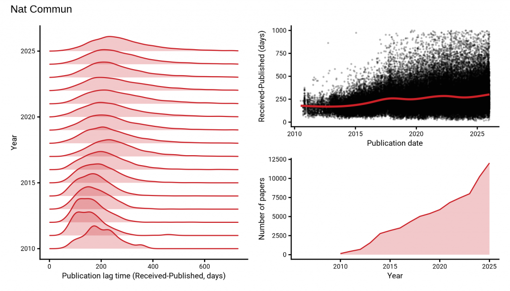 Există o creștere uriașă a numărului de lucrări publicate de Nature Communications, Science Advances și Cell Reports. Nature Communications este un uriaș, publicând aproximativ 12.500 de lucrări în 2025.